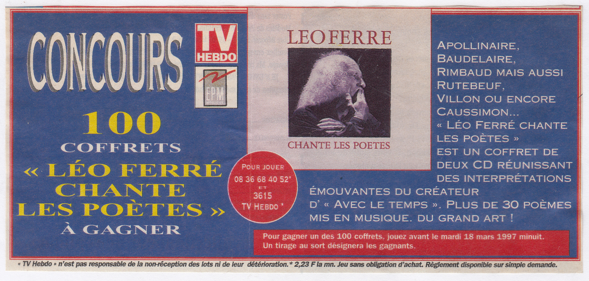 • Concours - 100 coffrets "Léo Ferré chante les poètes" à gagner