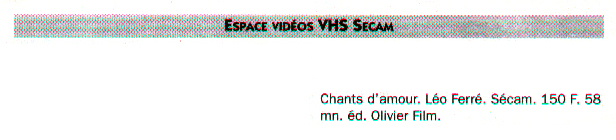 • Chant d'amour, Léo Ferré, K7 VHS Sécam