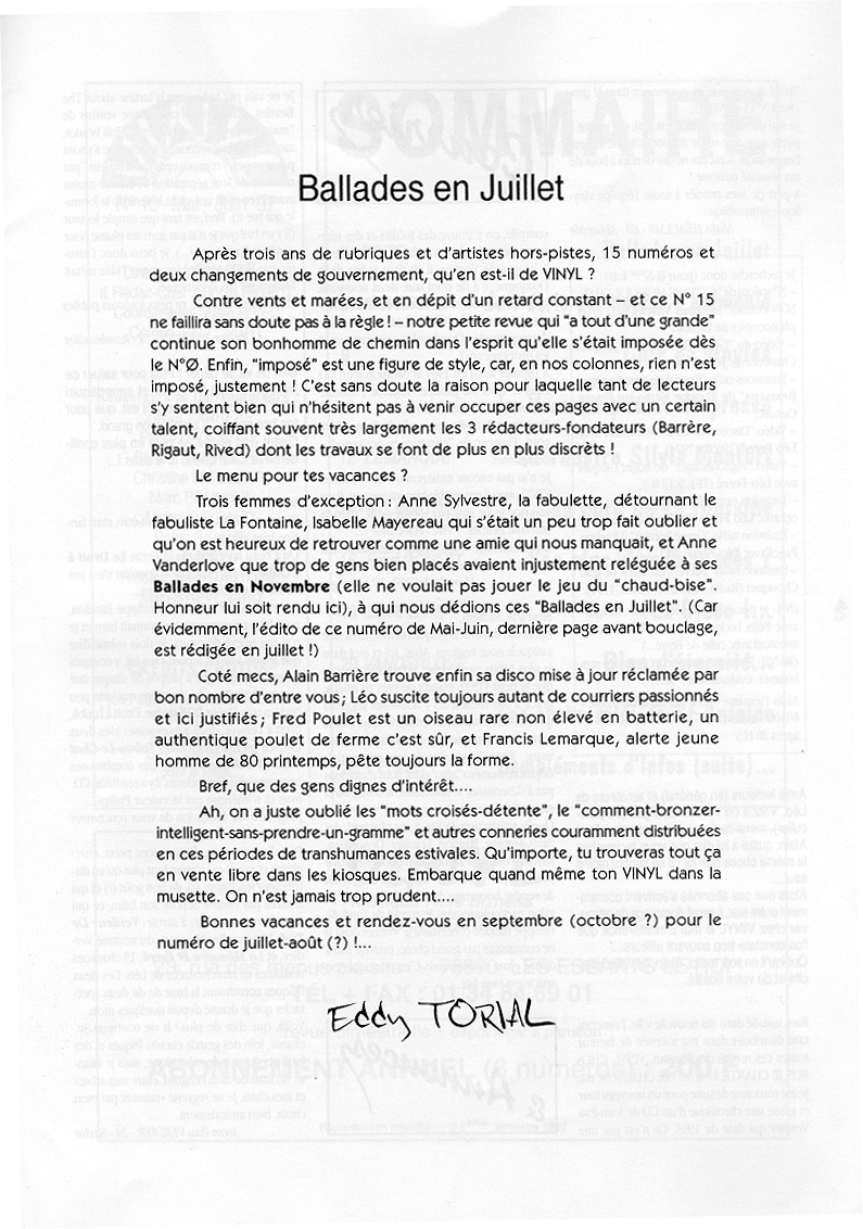 Vinyl N°16 de Juillet 1997
