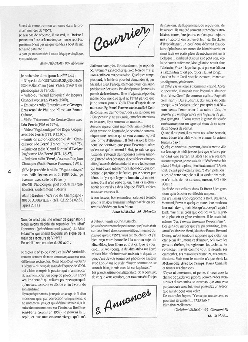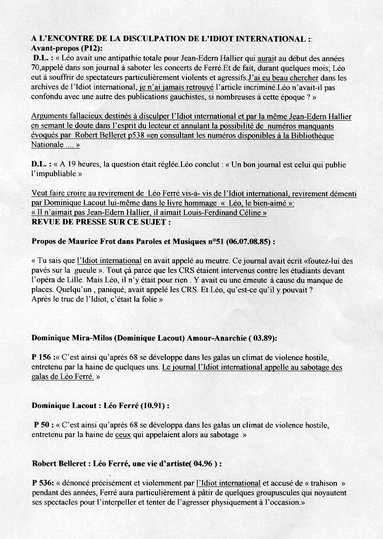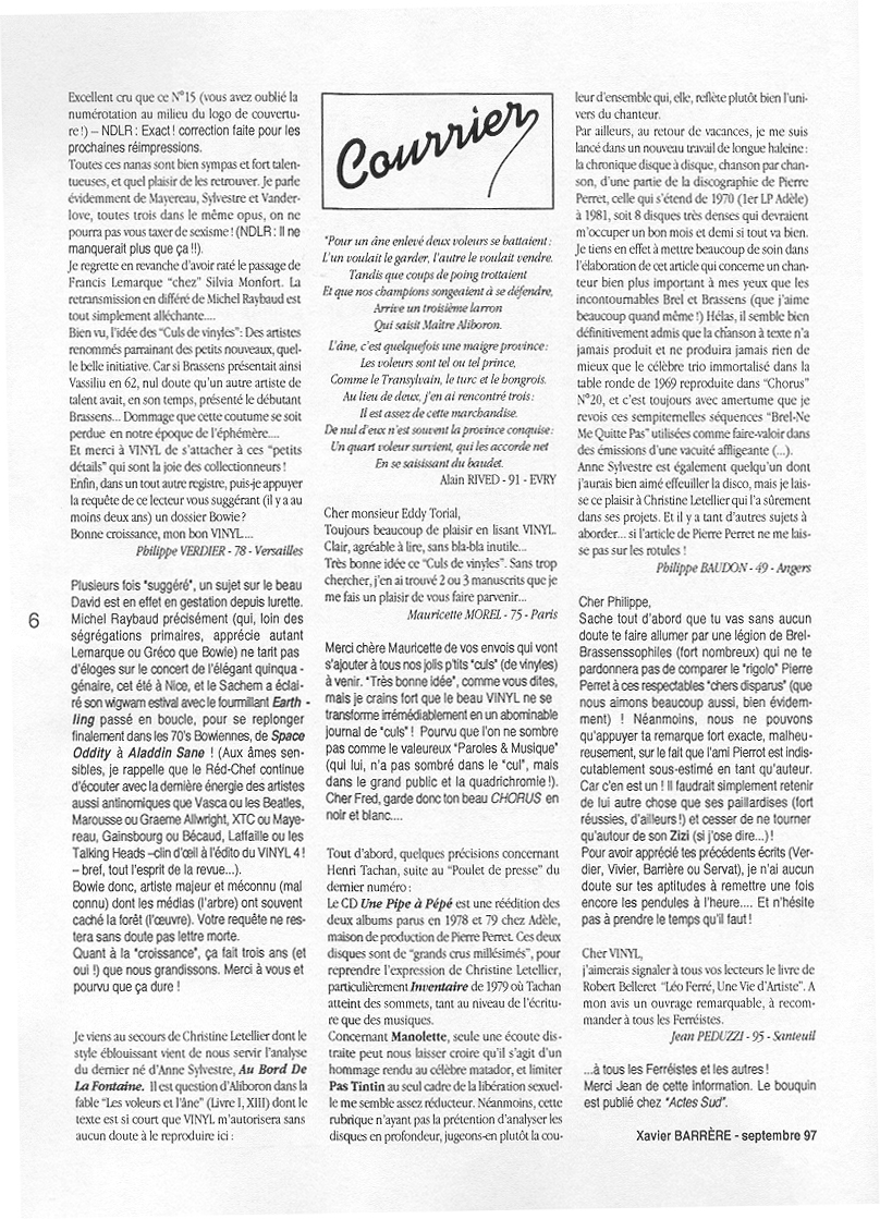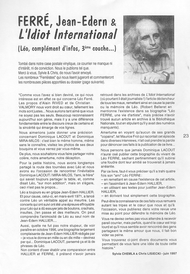 Vinyl, Courrier du 02/06/1997 au sujet de Lacout/L'idiot international