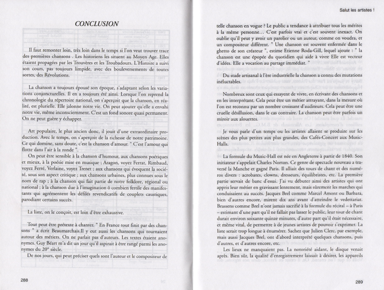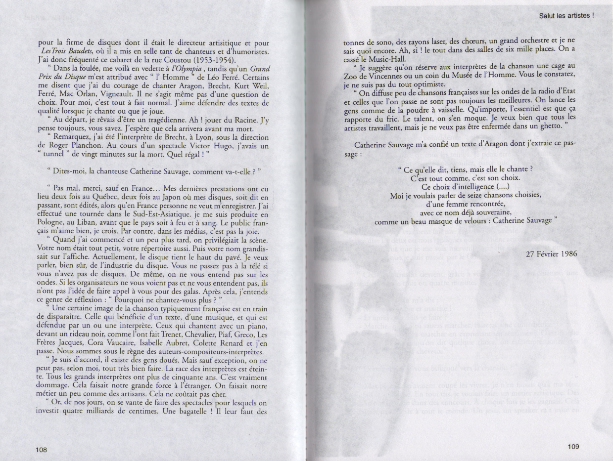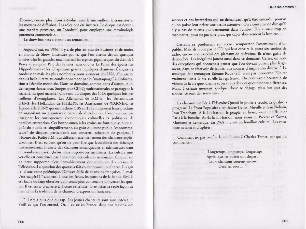 01.12 : Interview en plateau de l'animateur Pascal Sevran au sujet de la "bonne santé" de la chanson française et de son nouveau disque "Viva la vida". - " Dans les années 1950, c'était bien meilleur que de nos jours ; avec la réédition de ces vieilles chansons, on a là un peu de l'âme française... Les gens ne prennent pas des vessies pour des lanternes en France, Paris ne commande pas tout... Les sociétés d'édition françaises sont tenues par des mains étrangères... Il faut arrêter la querelle des anciens et des modernes... Je reçois aussi les Boys Band, car ce n'est pas déshonorant ; on peut aussi bien aimer Léo Ferré et les Boys Band ".