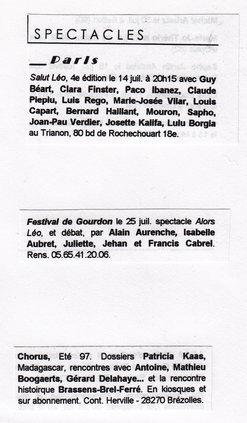 Télérama "Sortir" de Juillet 1997