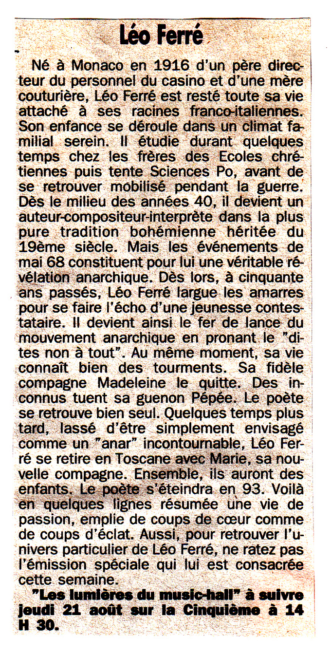 • Léo Ferré ou le mal à l'âme d'un anarchiste