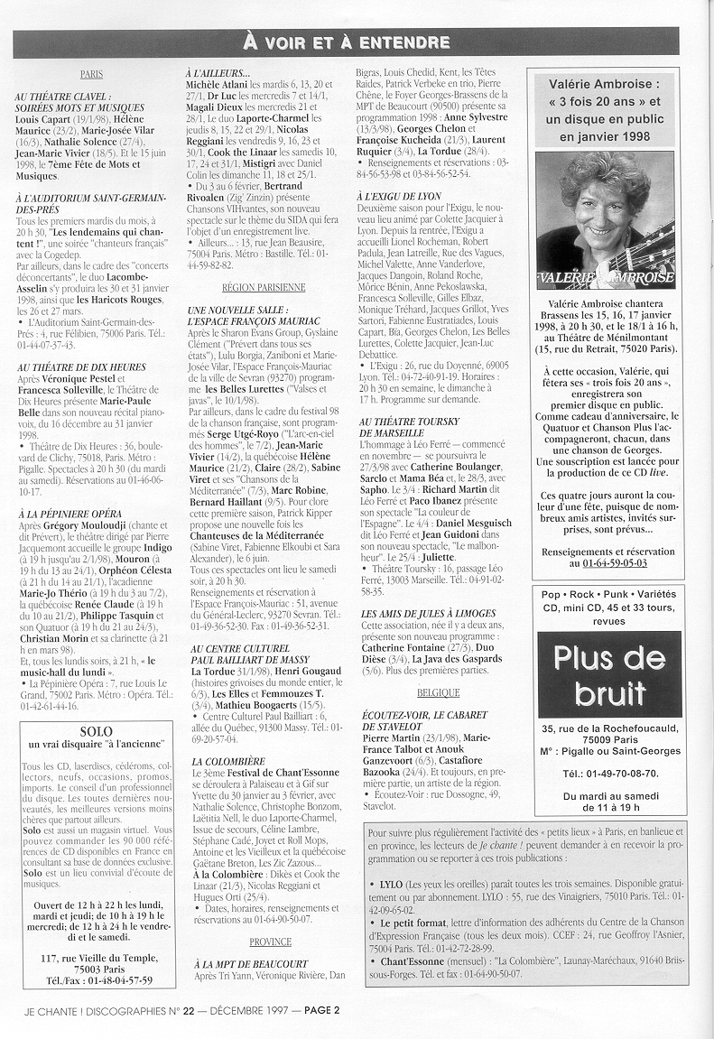 Je chante N°22 Décembre 1997