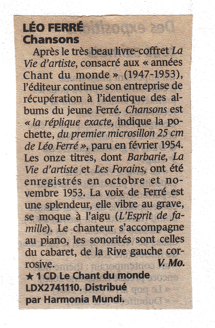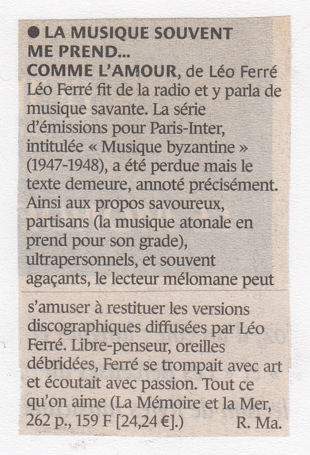 • Ferré Léo - La musique souvent me prend comme l'amour