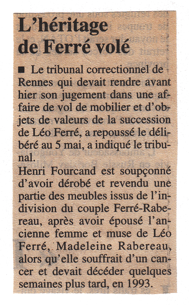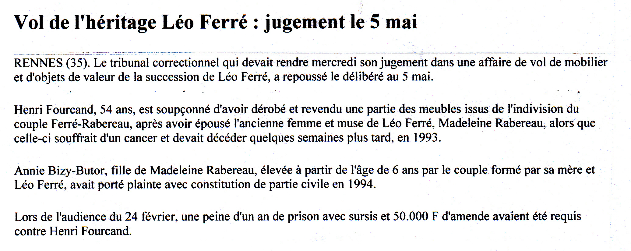 • Vol de l'héritage de Léo Ferré : jugement le 5 mai