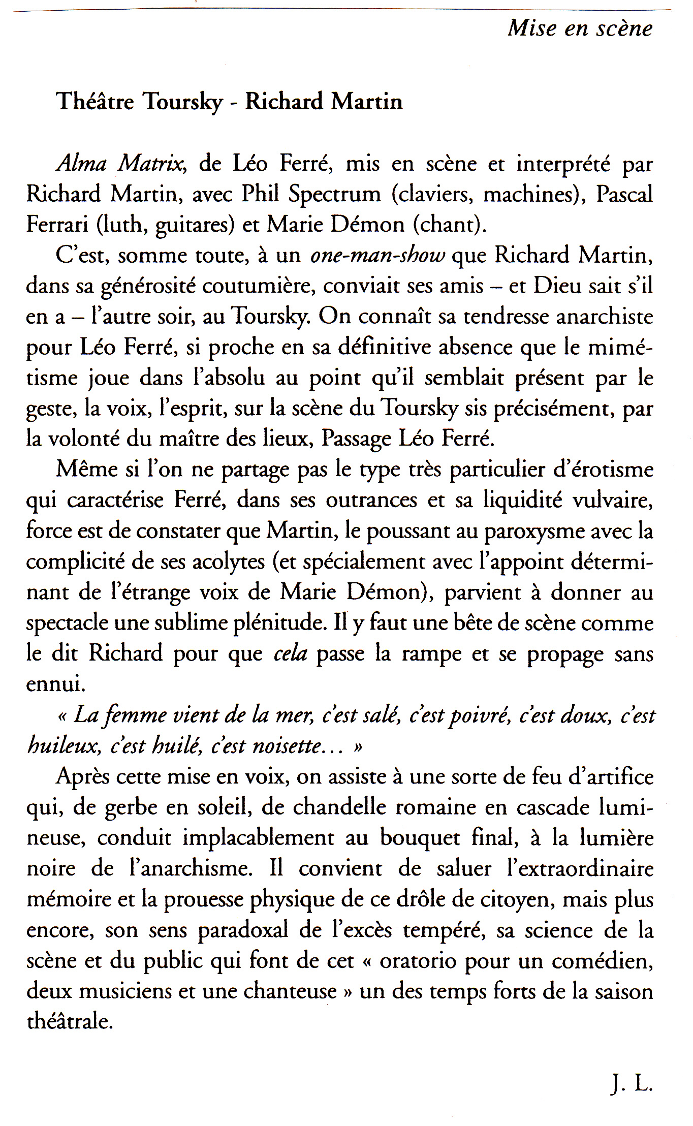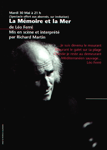 • La mémoire et la mer, mis en scène et interprété par Richard Martin (30 mai 2000)