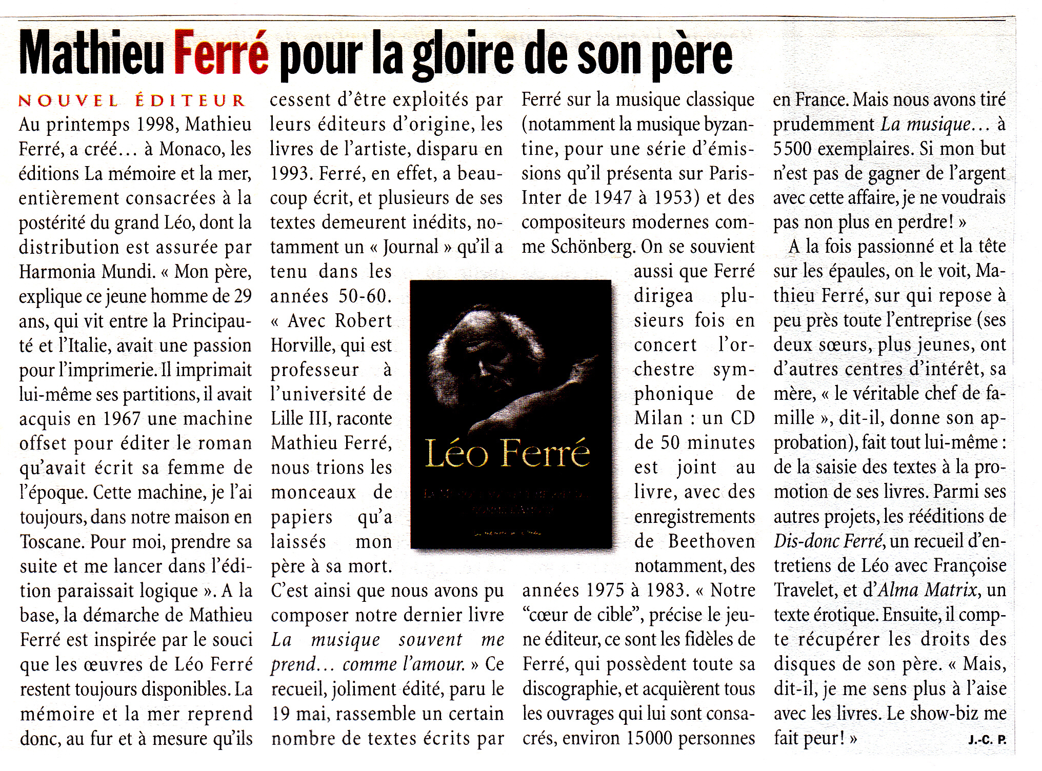 • L'héritage de Léo Ferré avait été en partie volé : 8 mois avec sursis