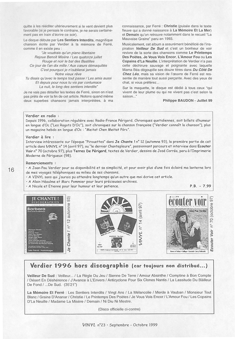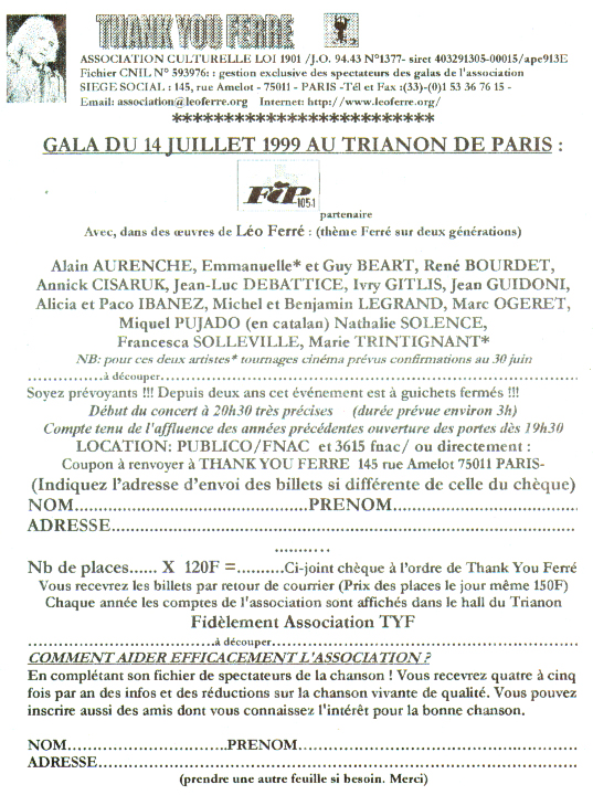 Le temps d'une chanson, émission du 06/07/1999, notice descriptive.