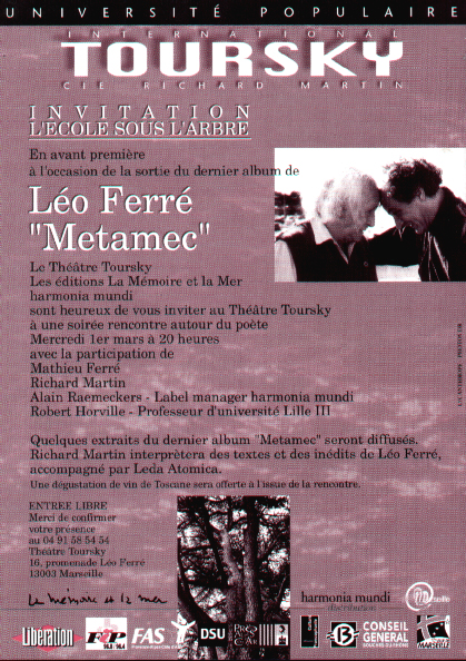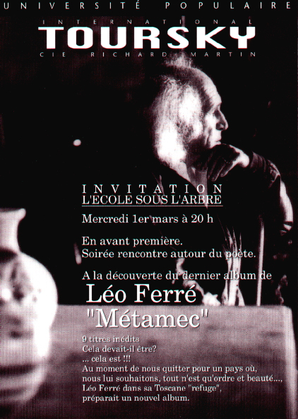 • Soirée rencontre autour du poète Léo Ferré à l'occasion de la sortie du dernier album "Métamec"