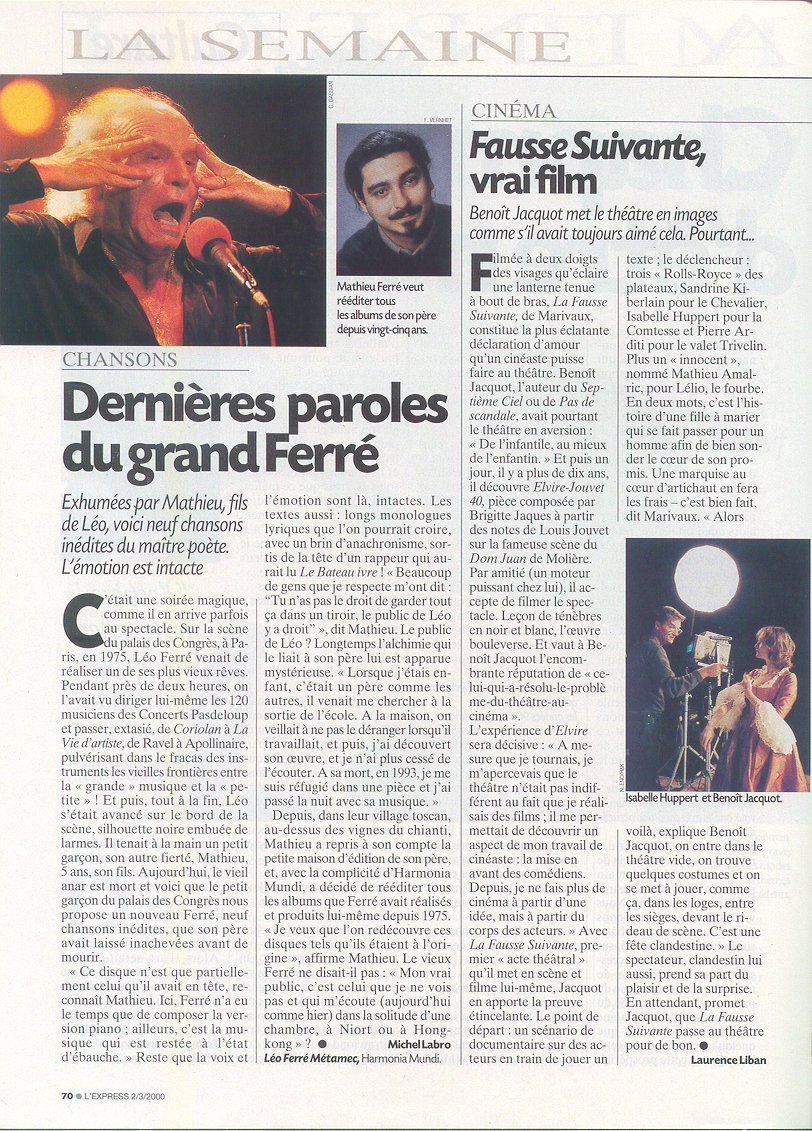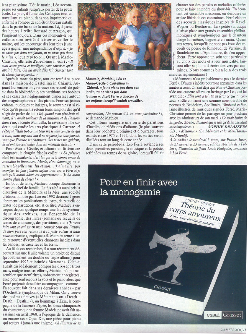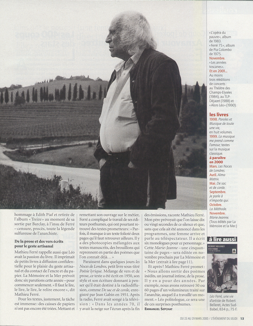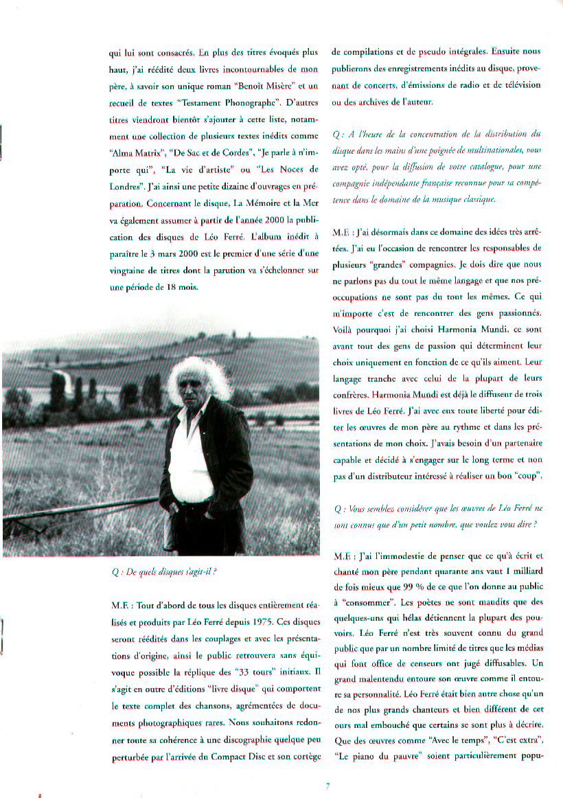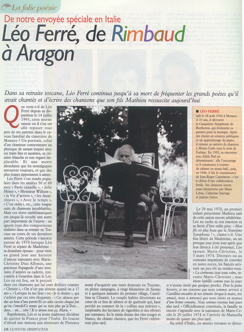 Le Magazine de la Chanson spécial Léo Ferré par Martin Pénet et Mathieu Ferré , émission du 08/07/2000