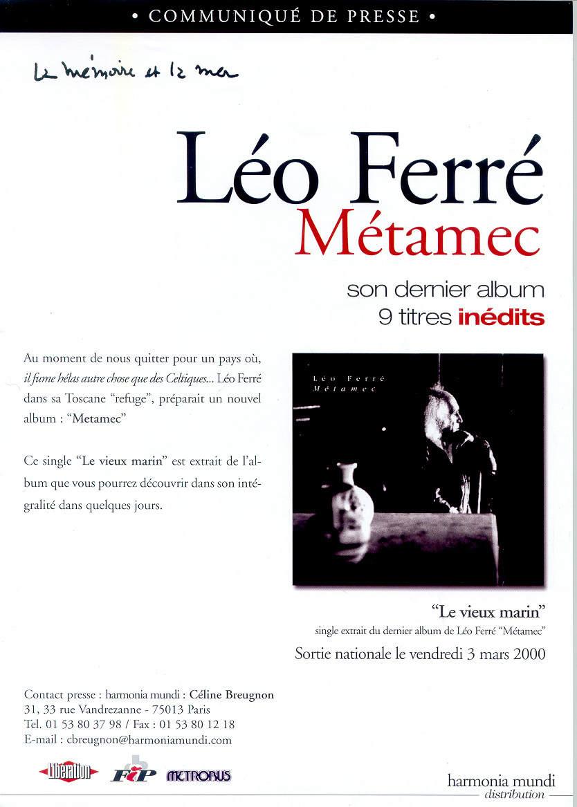 • Léo Ferré, Sortie de l'album Métamec