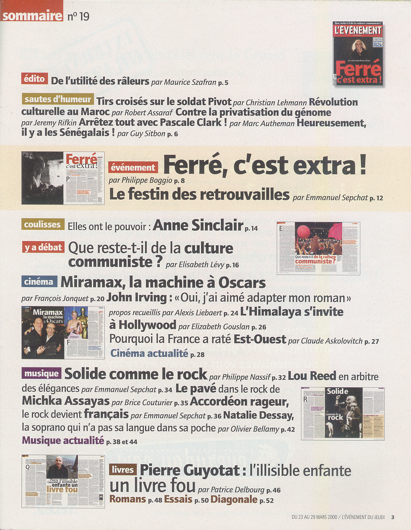 L'évènement du jeudi du 23 au 29/03/2000