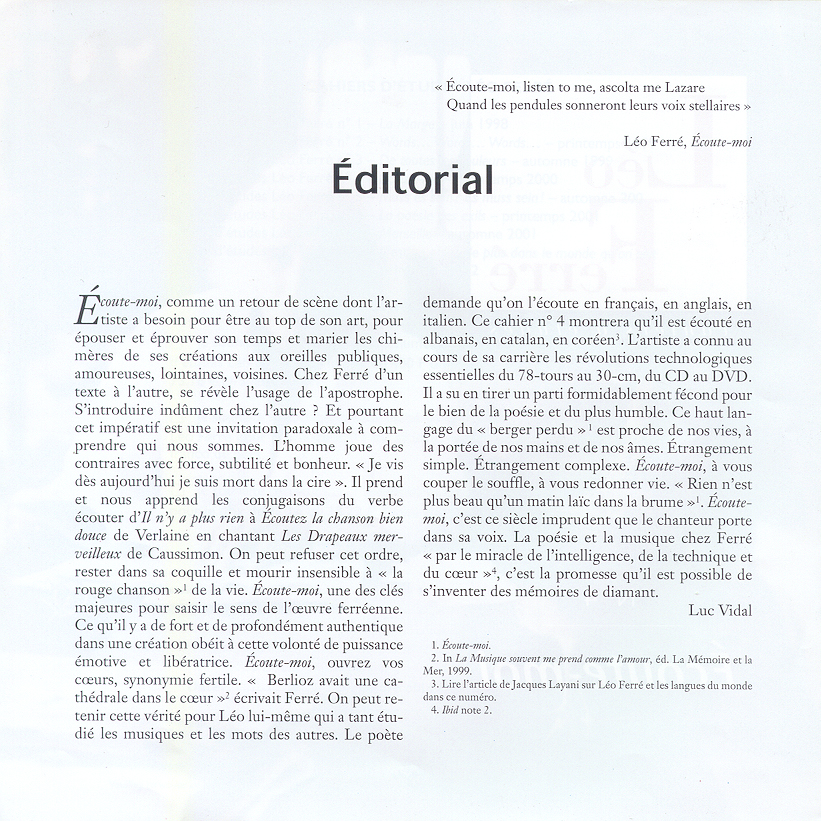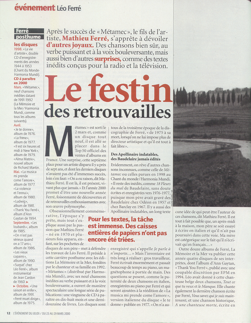 • Ferré d'outre-siècle - Un poème posthume, en prélude à un "nouvel " album