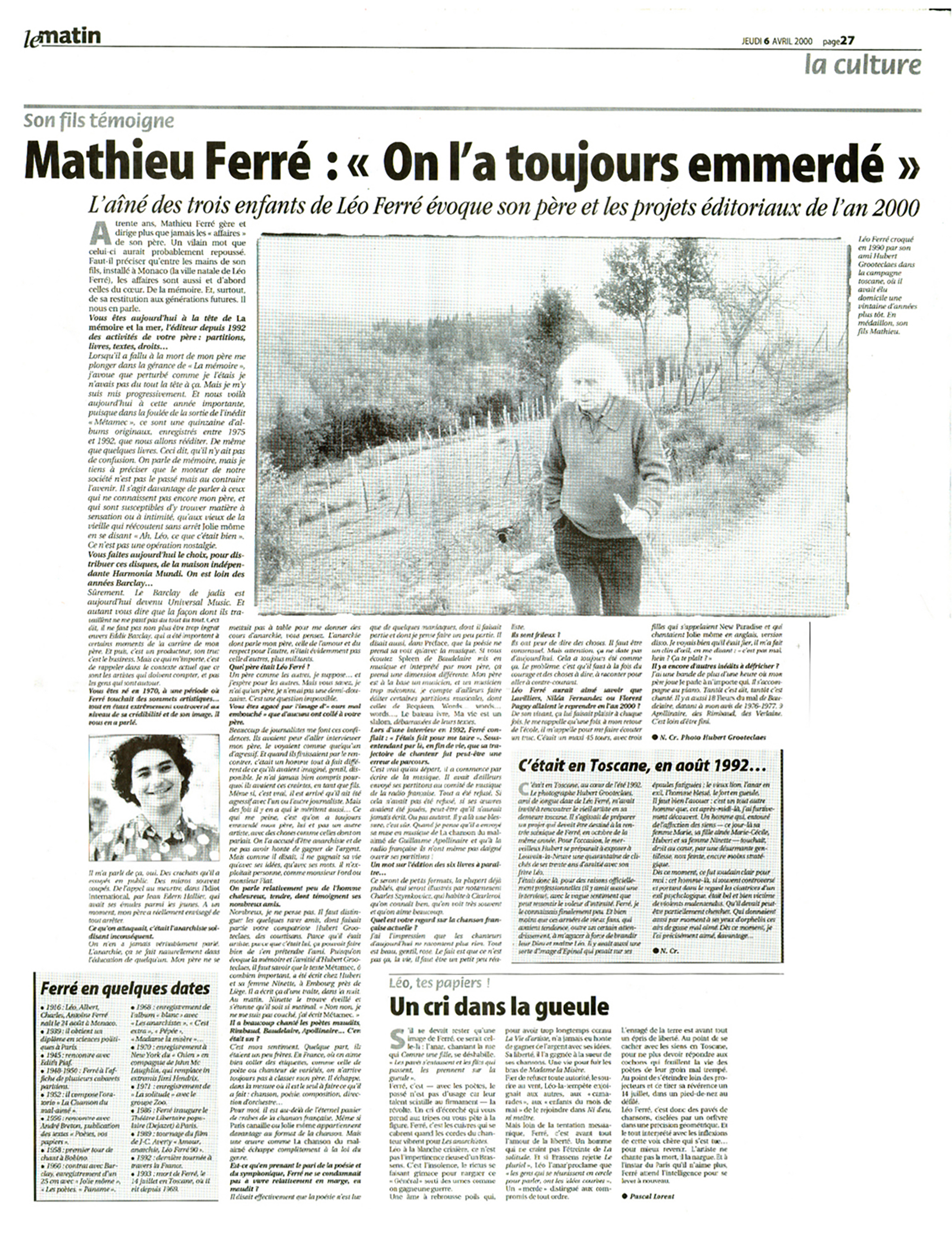• En Toscane, la famille de Léo Ferré entretient la flamme