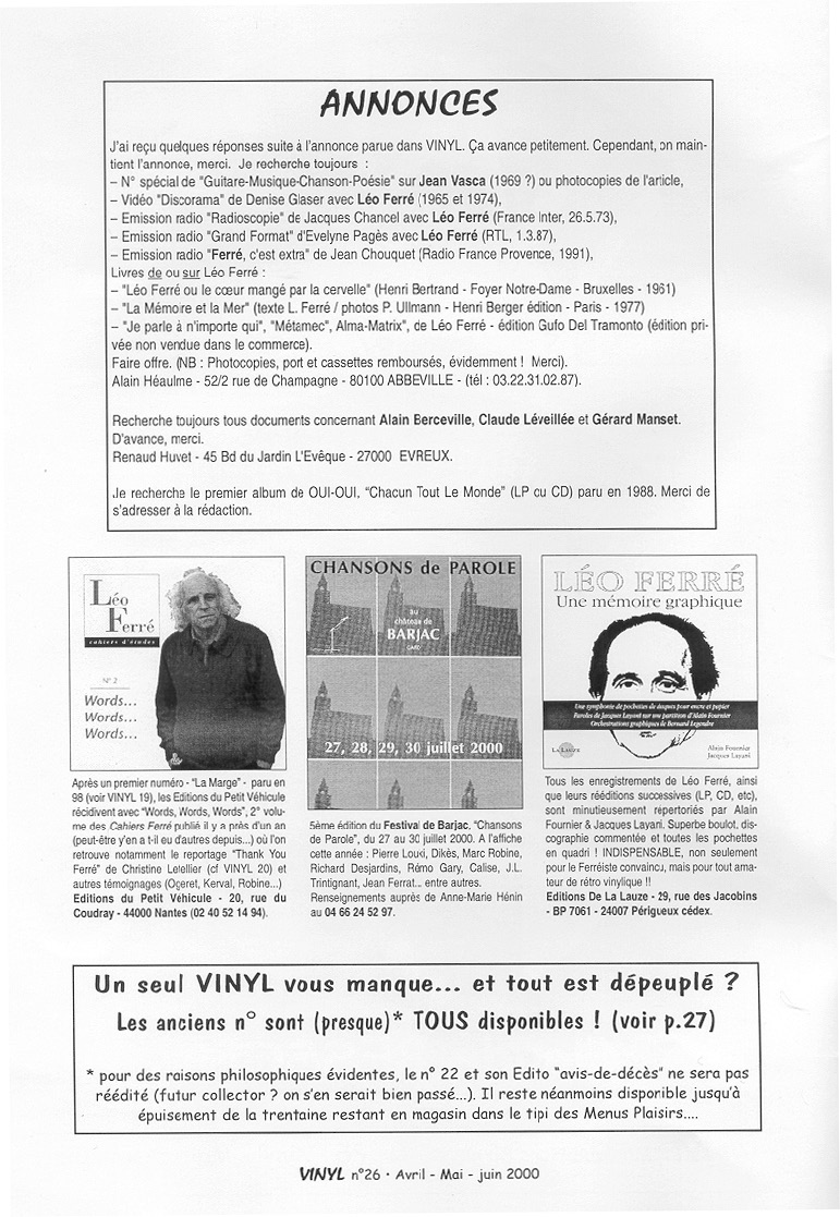 Vinyl n° 26 du 04/05/06/2000