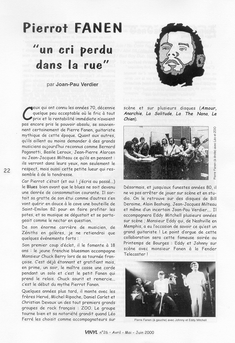 • Pierrot Fanen "un cri perdu dans la rue " par Joan-Pau Verdier