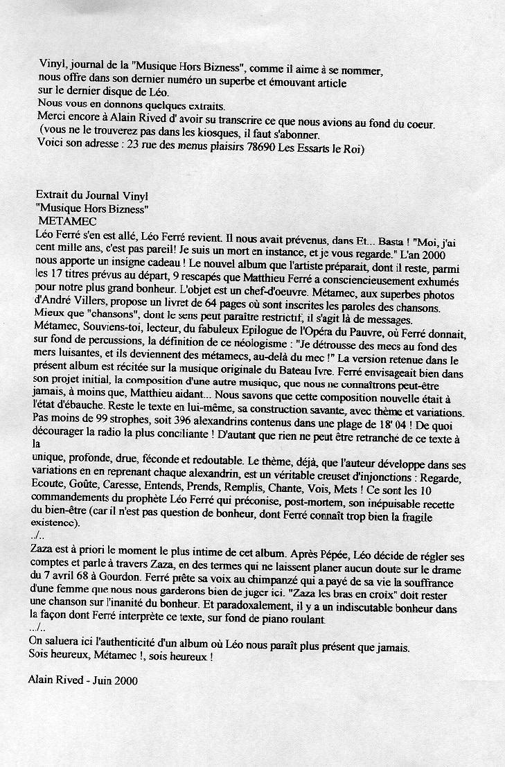 • Léo Ferré : Métamec par Anne-Marie Paquotte