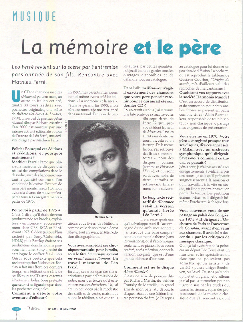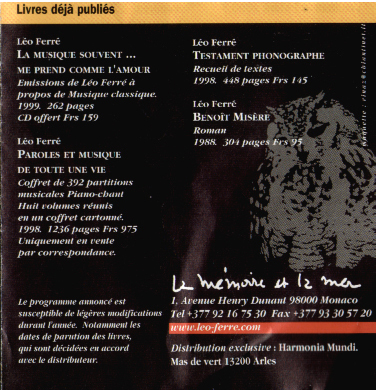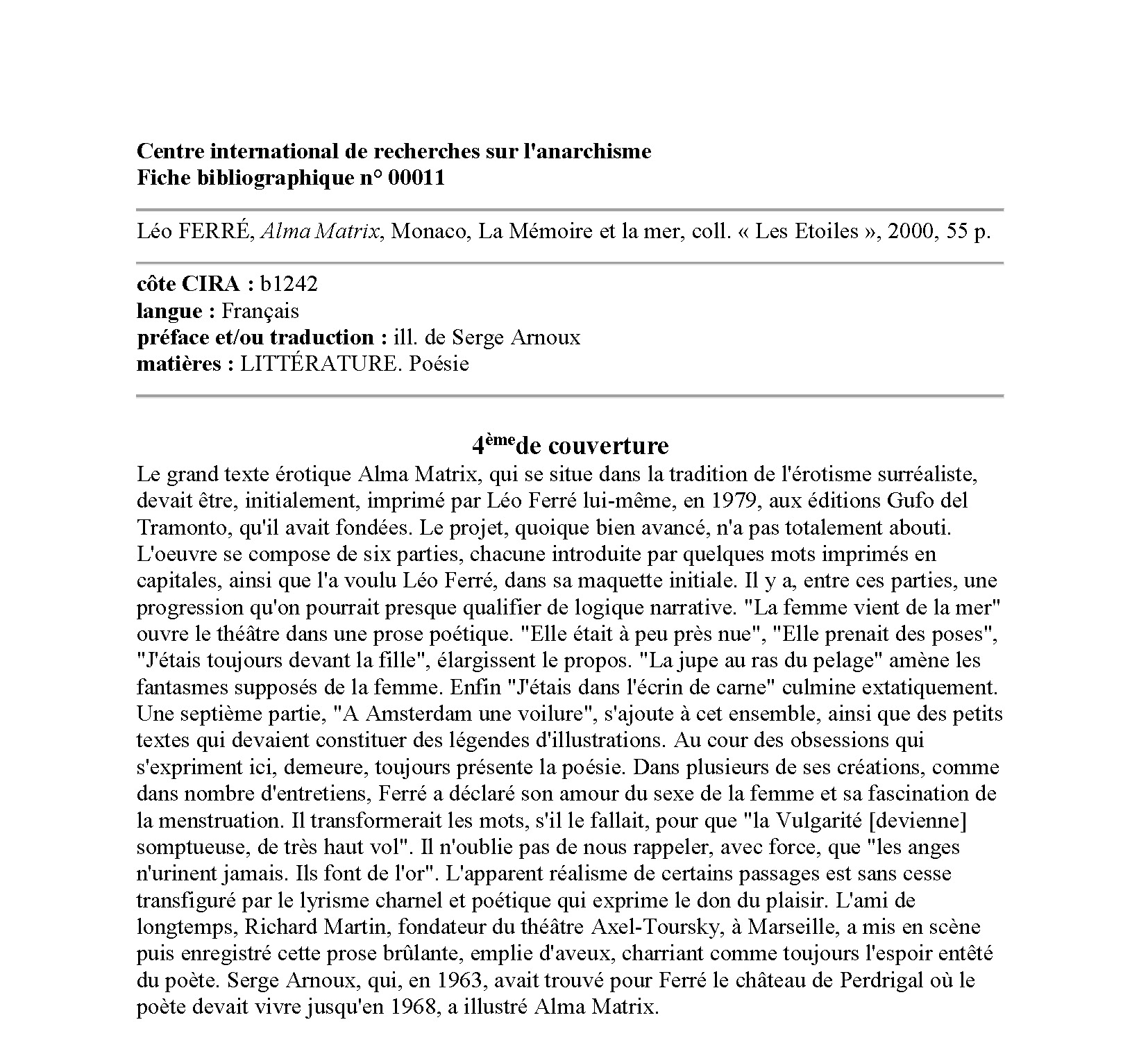 • Fiche bibliographique : Léo Ferré, Alma Matrix