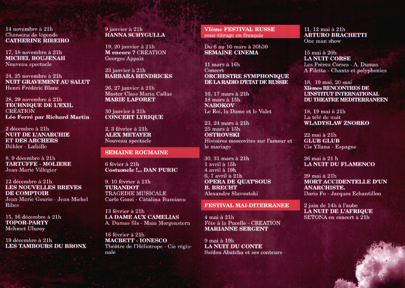 Théatre Toursky : saison 2001-2002