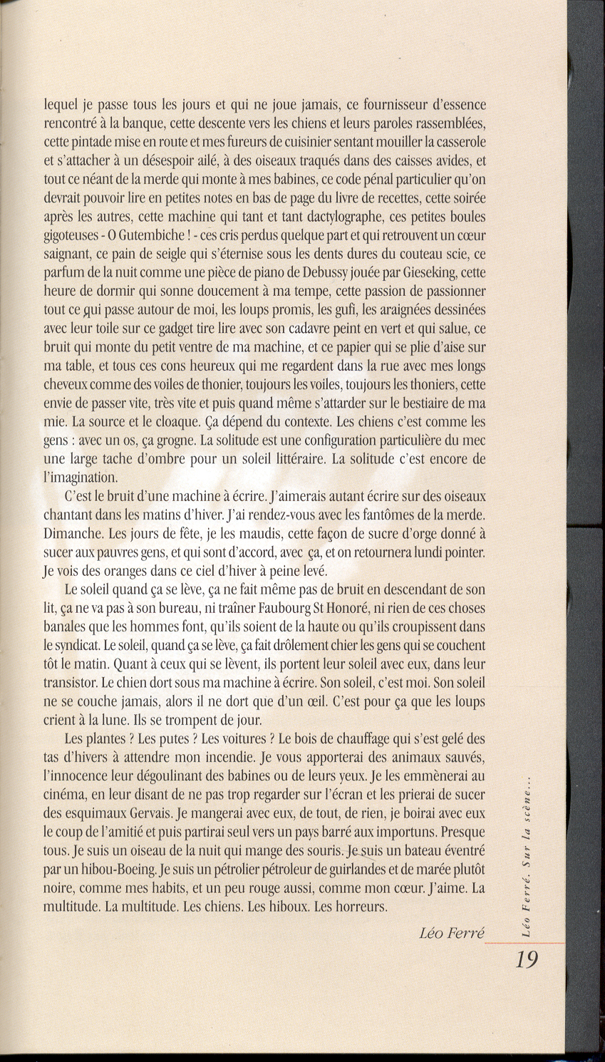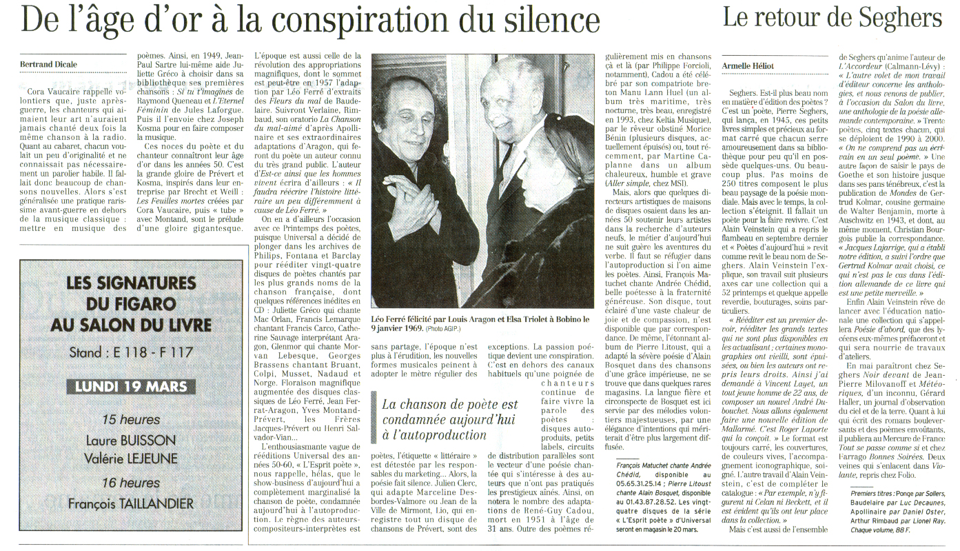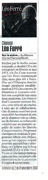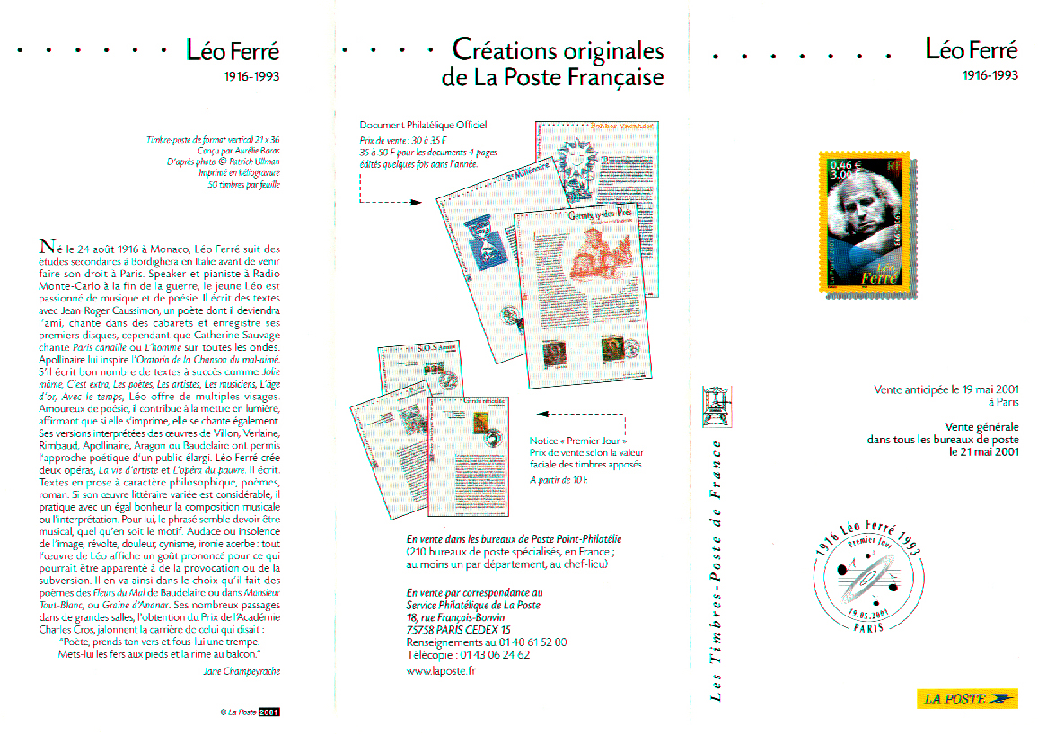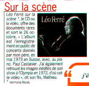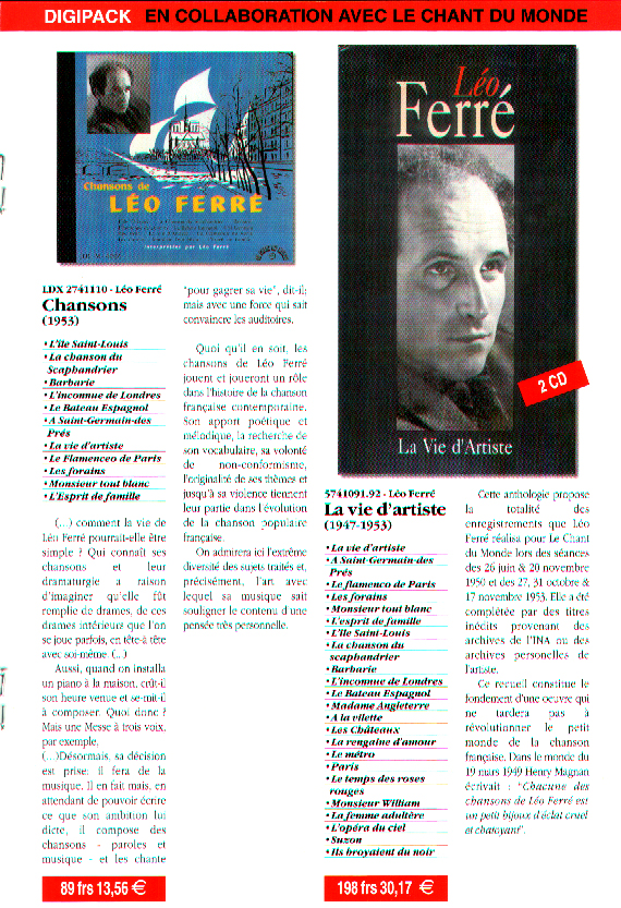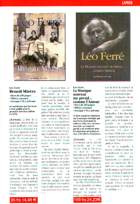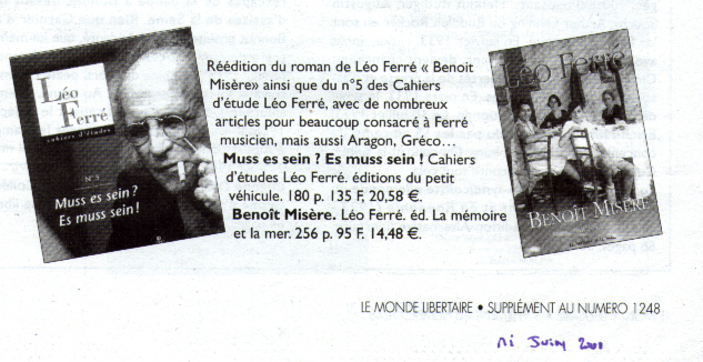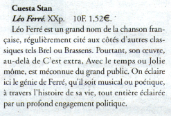 Sortie du livre de Stan Cuesta "Léo Ferré" le 01/03/2001