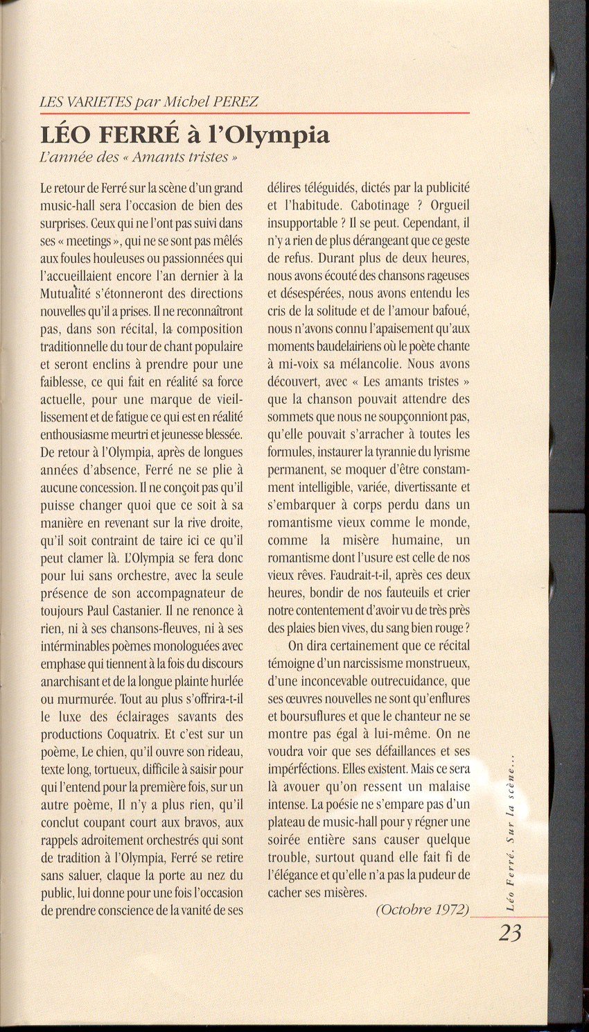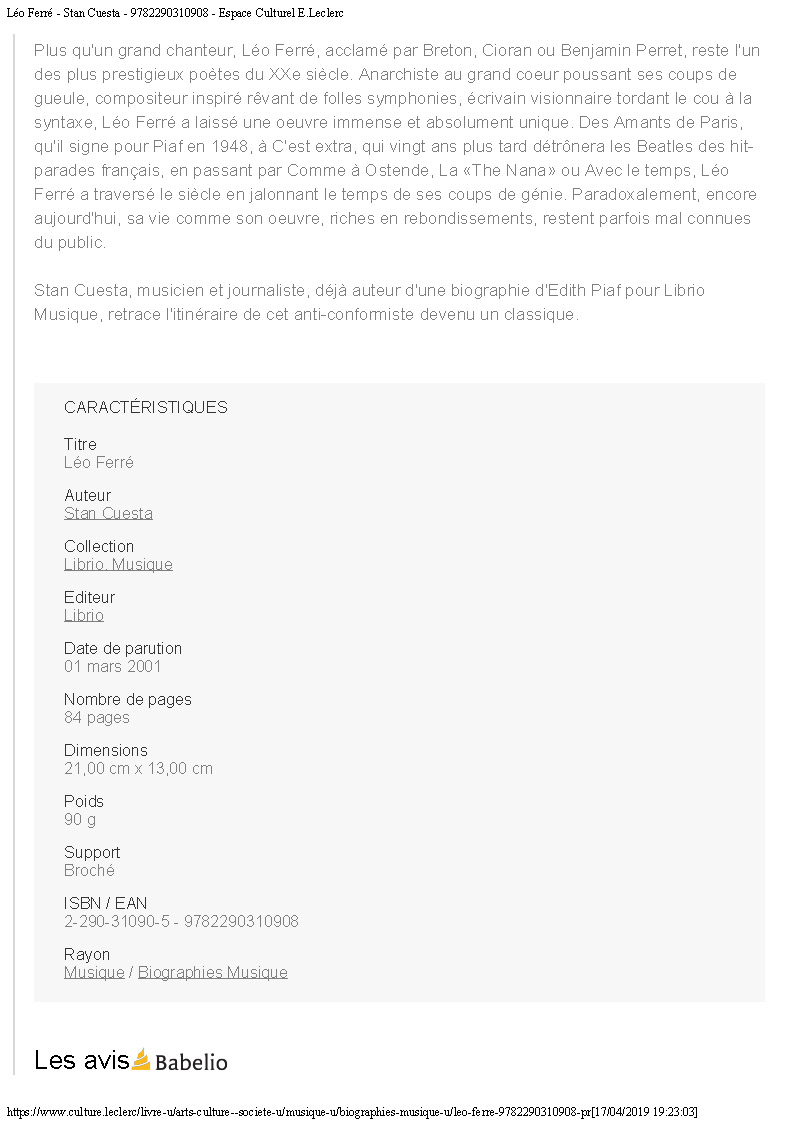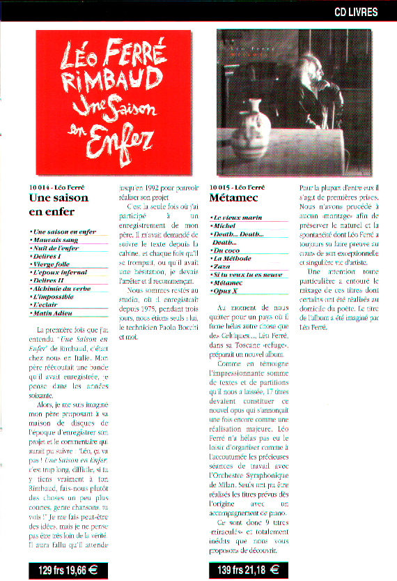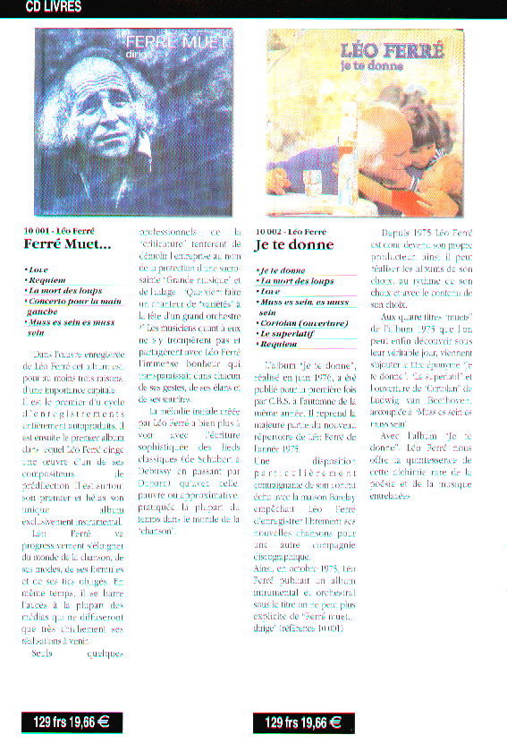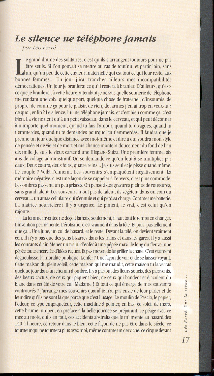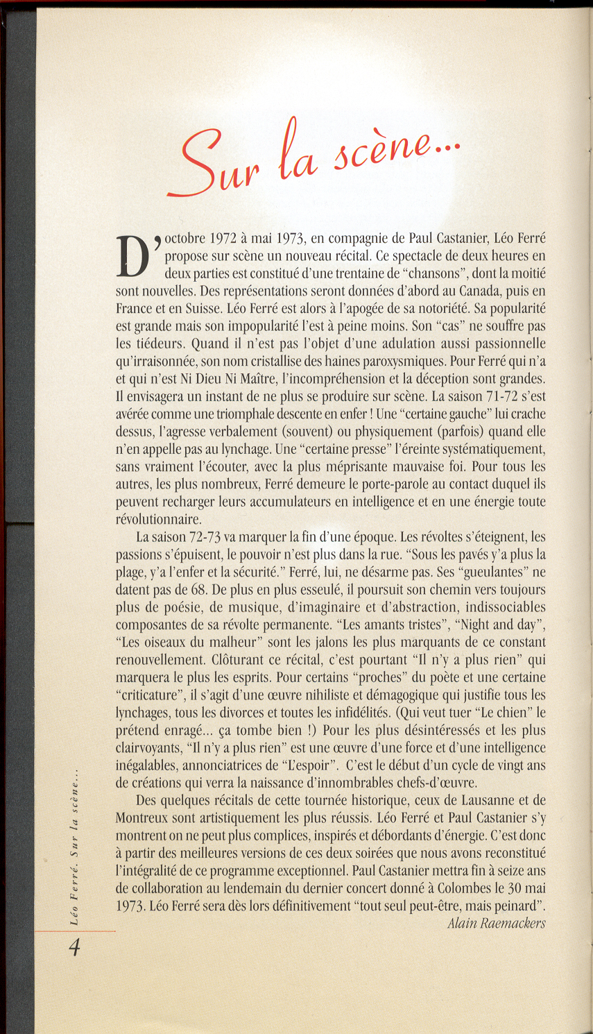 Sortie du livre de Stan Cuesta "Léo Ferré" le 01/03/2001