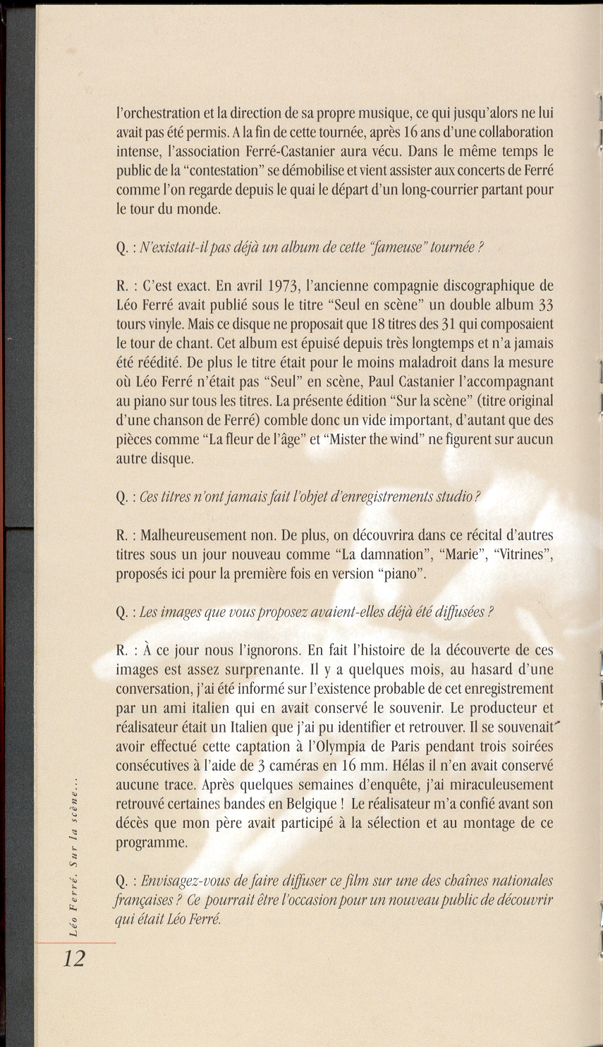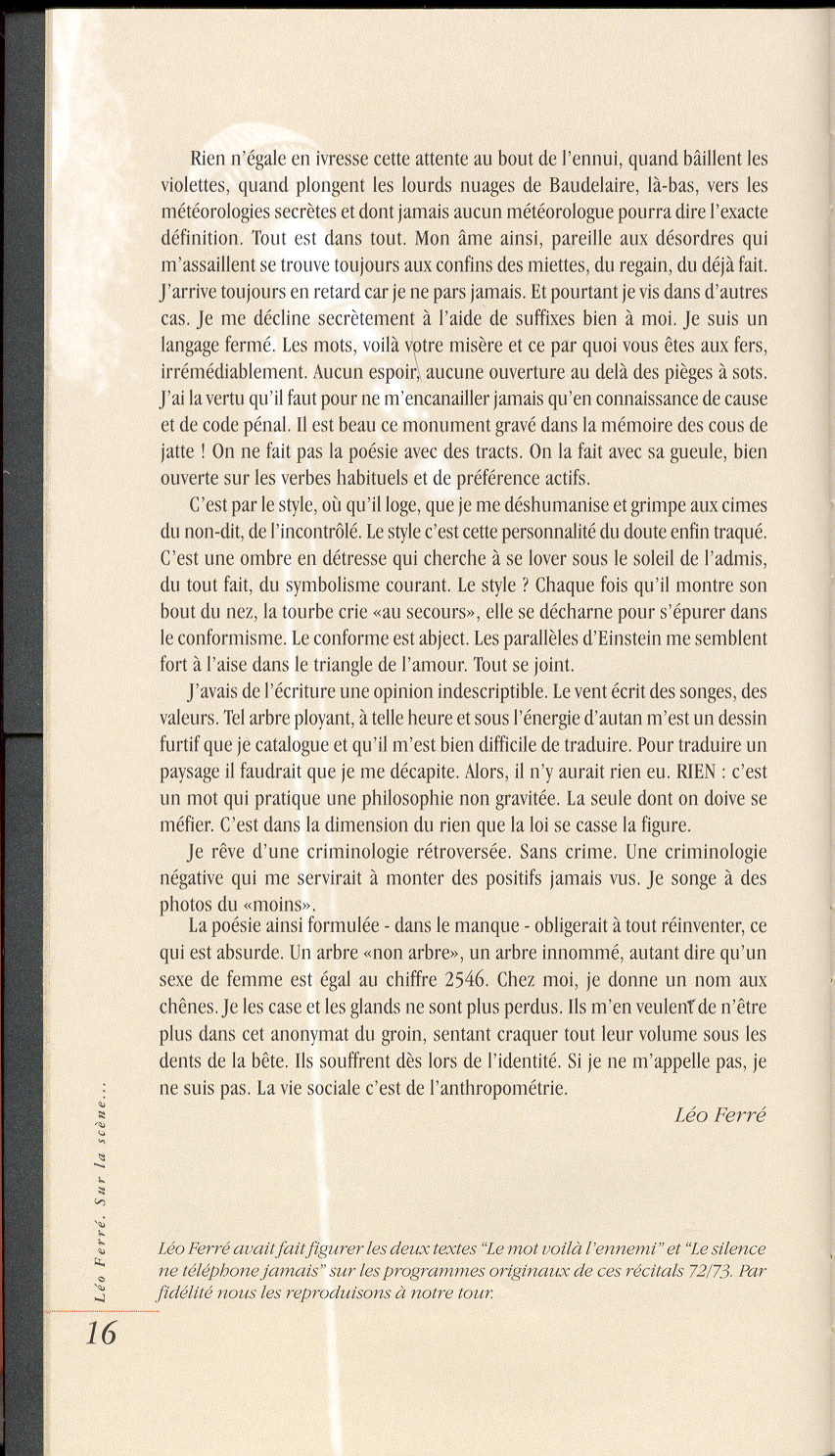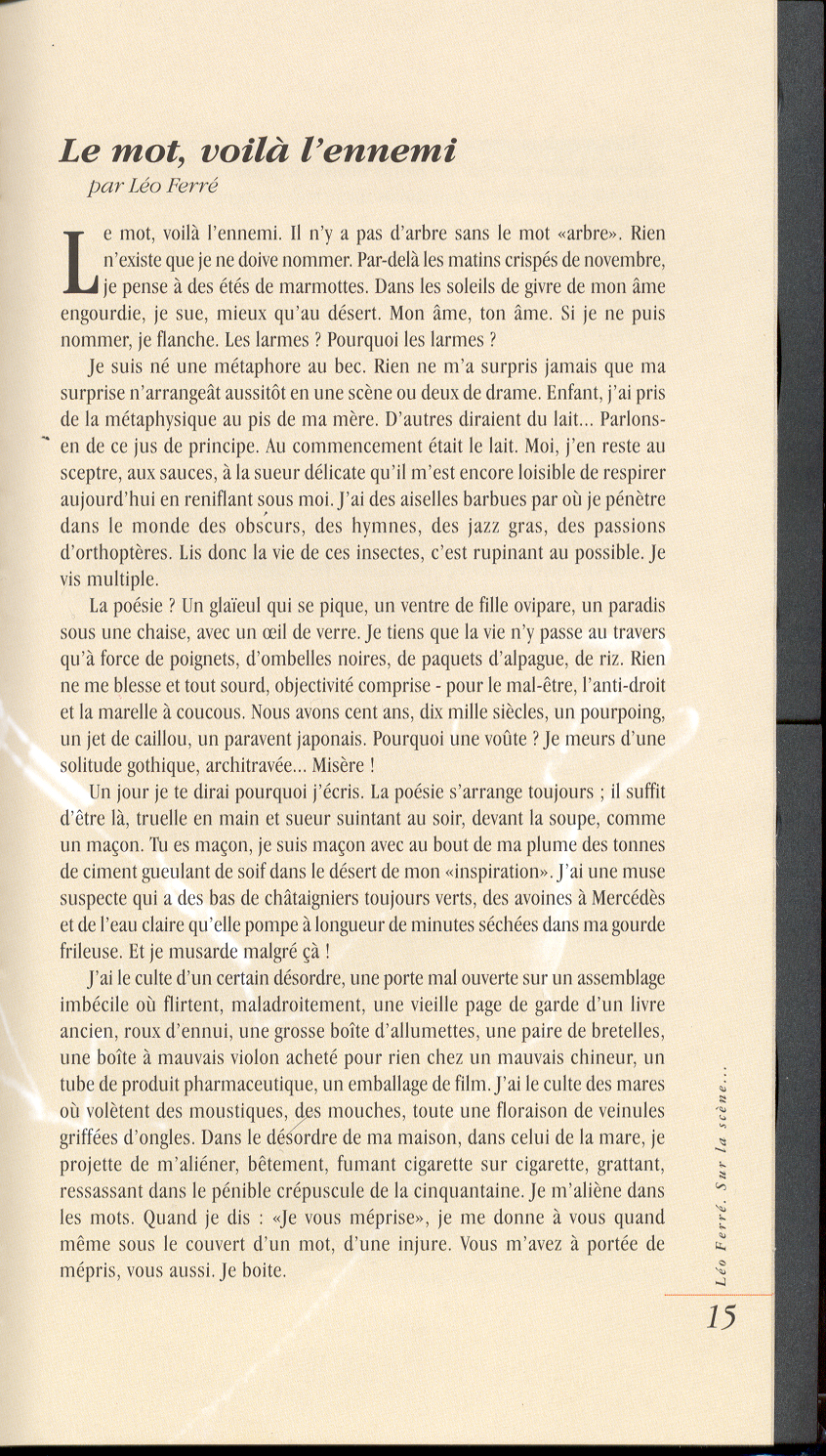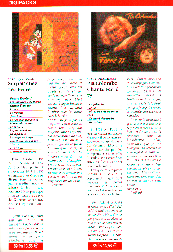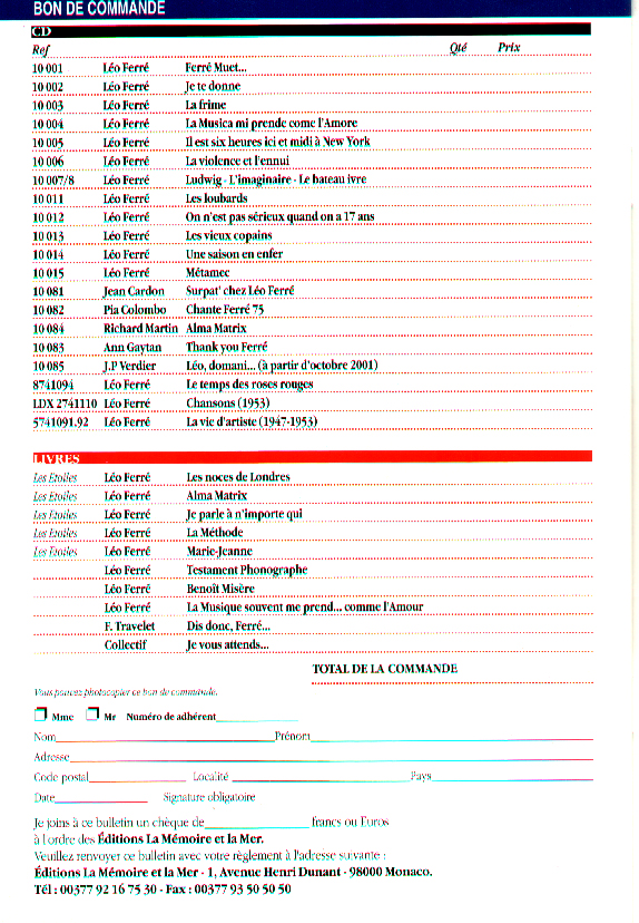 Sortie du livre de Stan Cuesta "Léo Ferré" le 01/03/2001