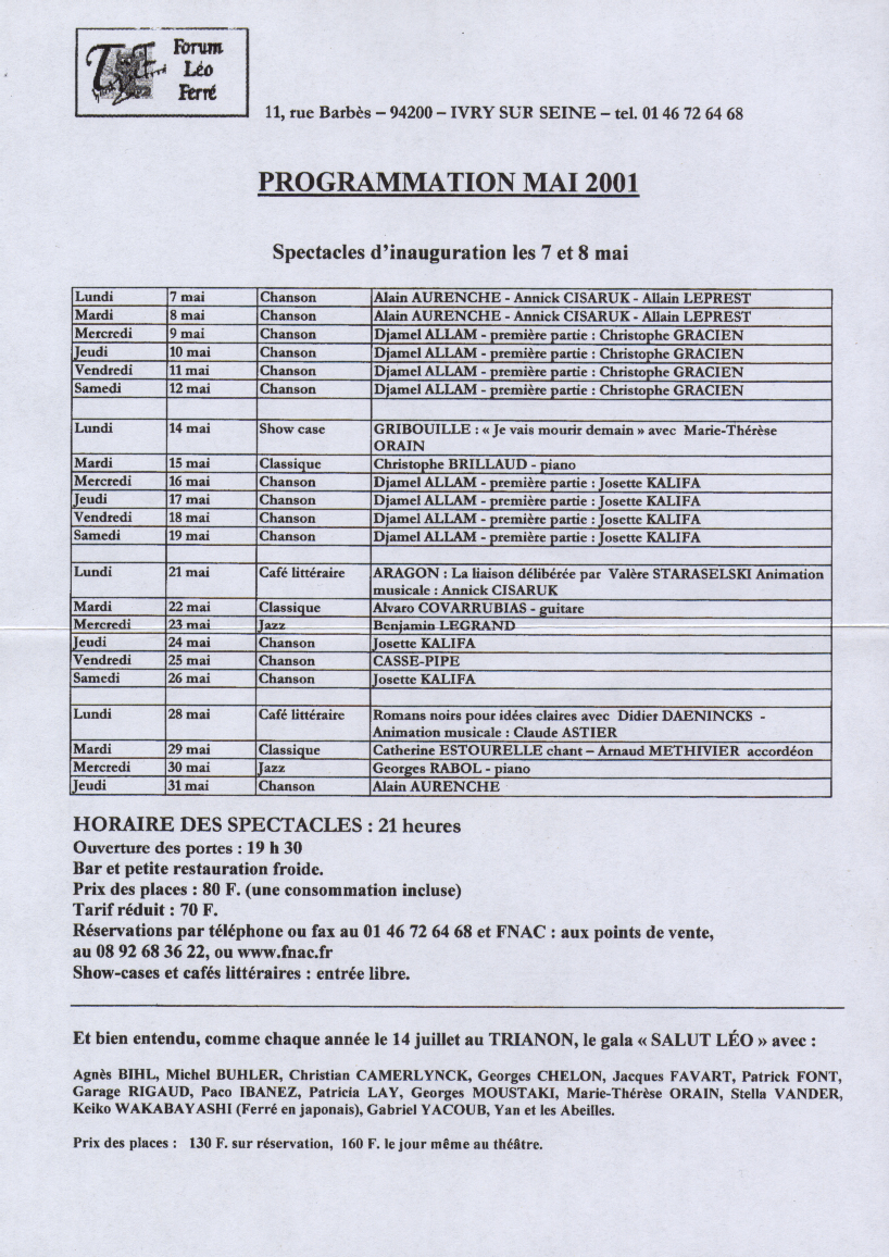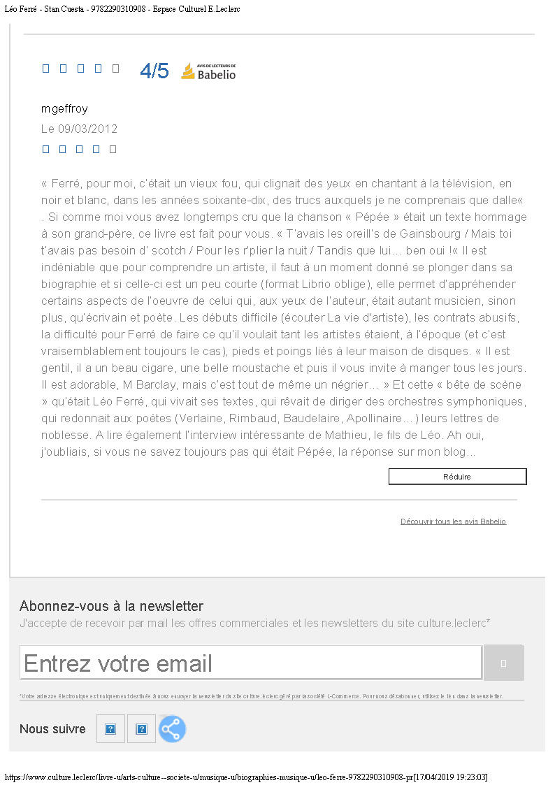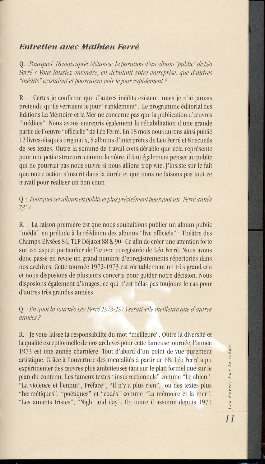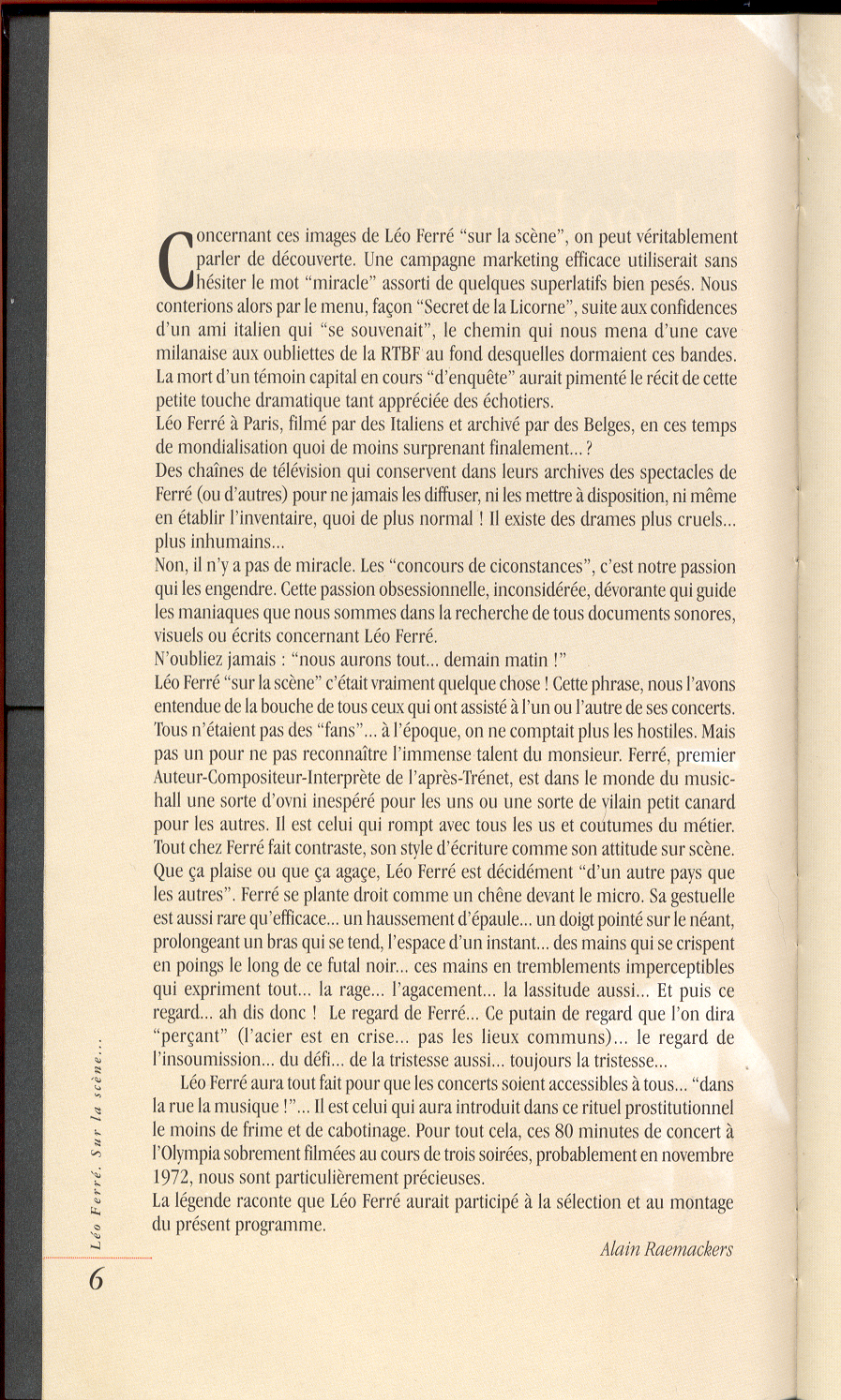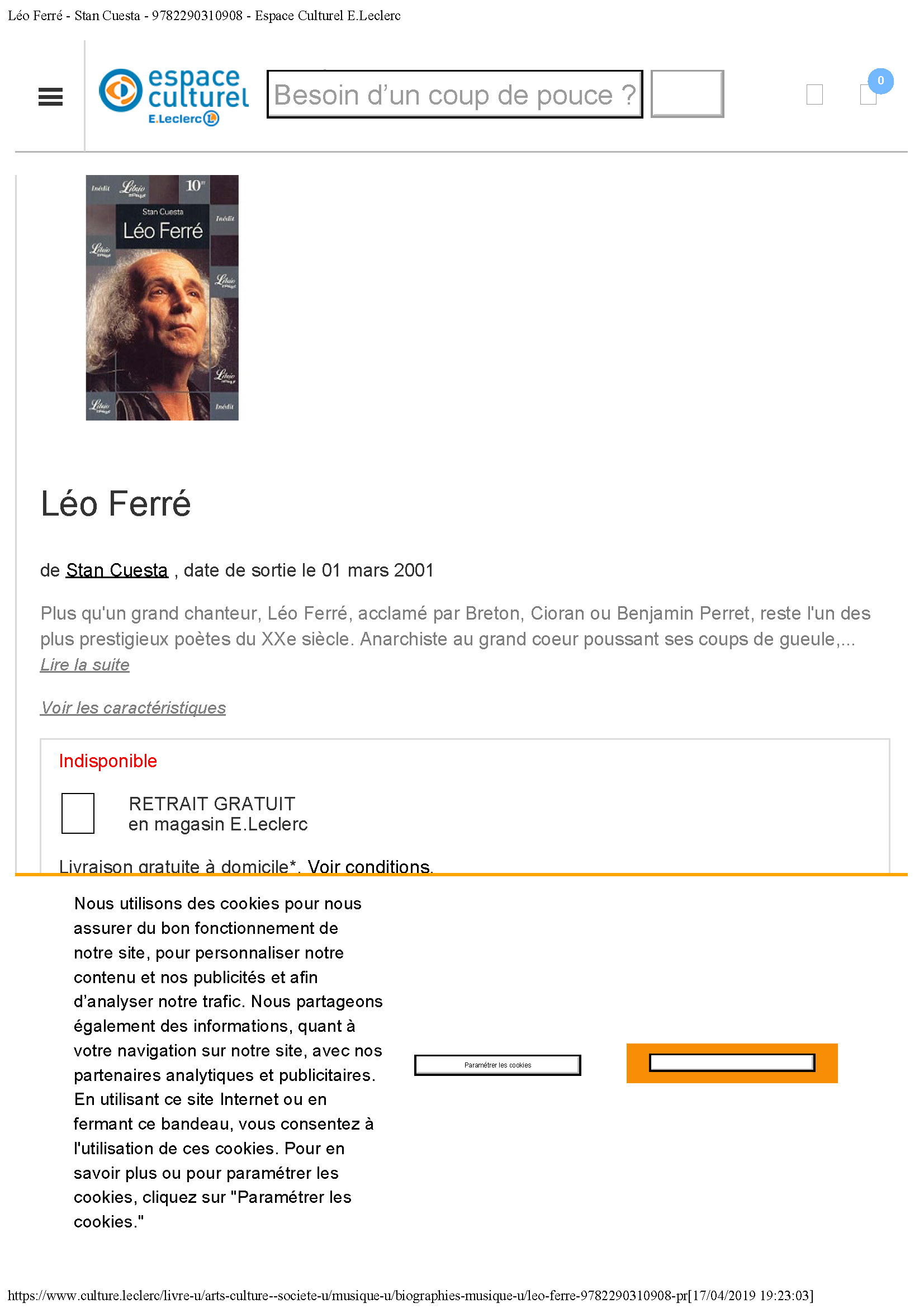 Sortie du livre de Stan Cuesta "Léo Ferré" le 01/03/2001