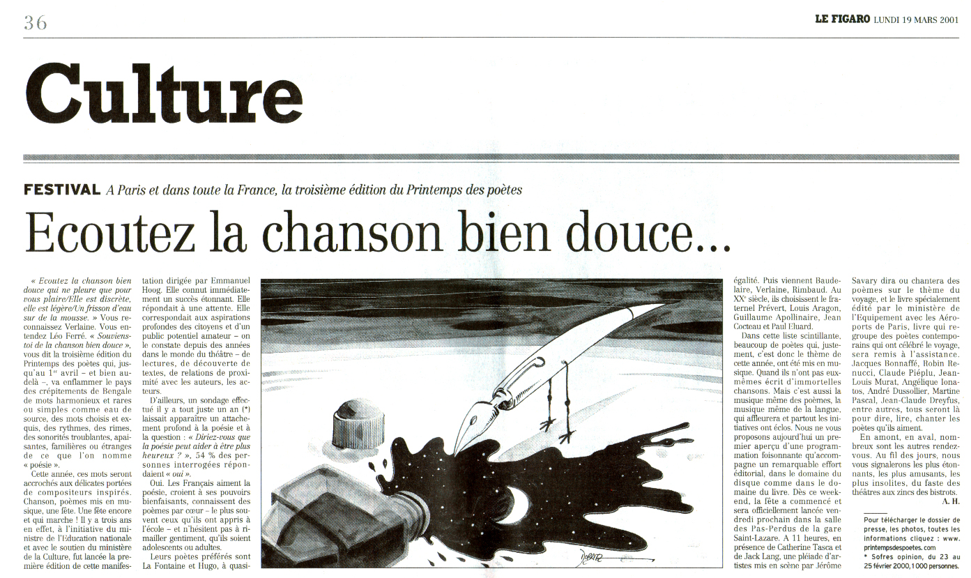 • Écoutez la chanson bien douce... ( troisième édition du Printemps des poètes )