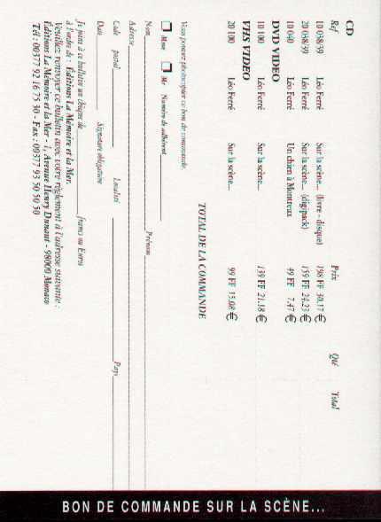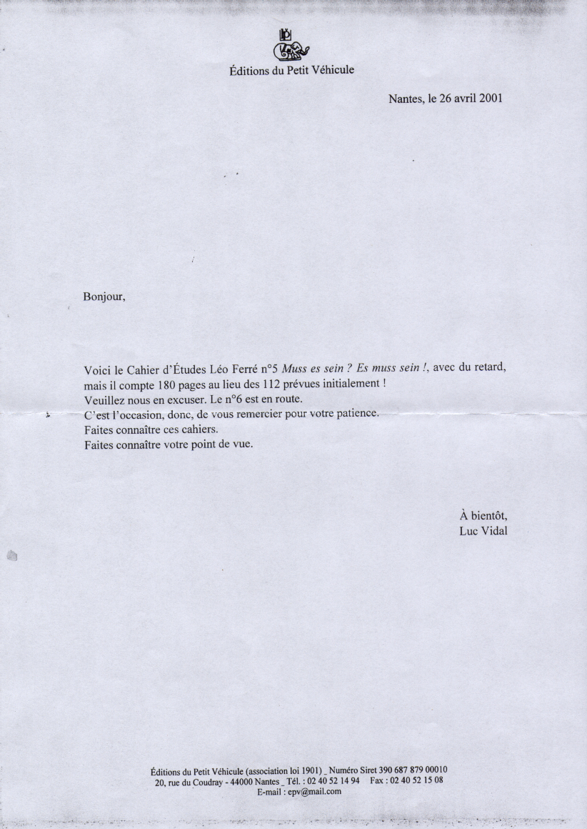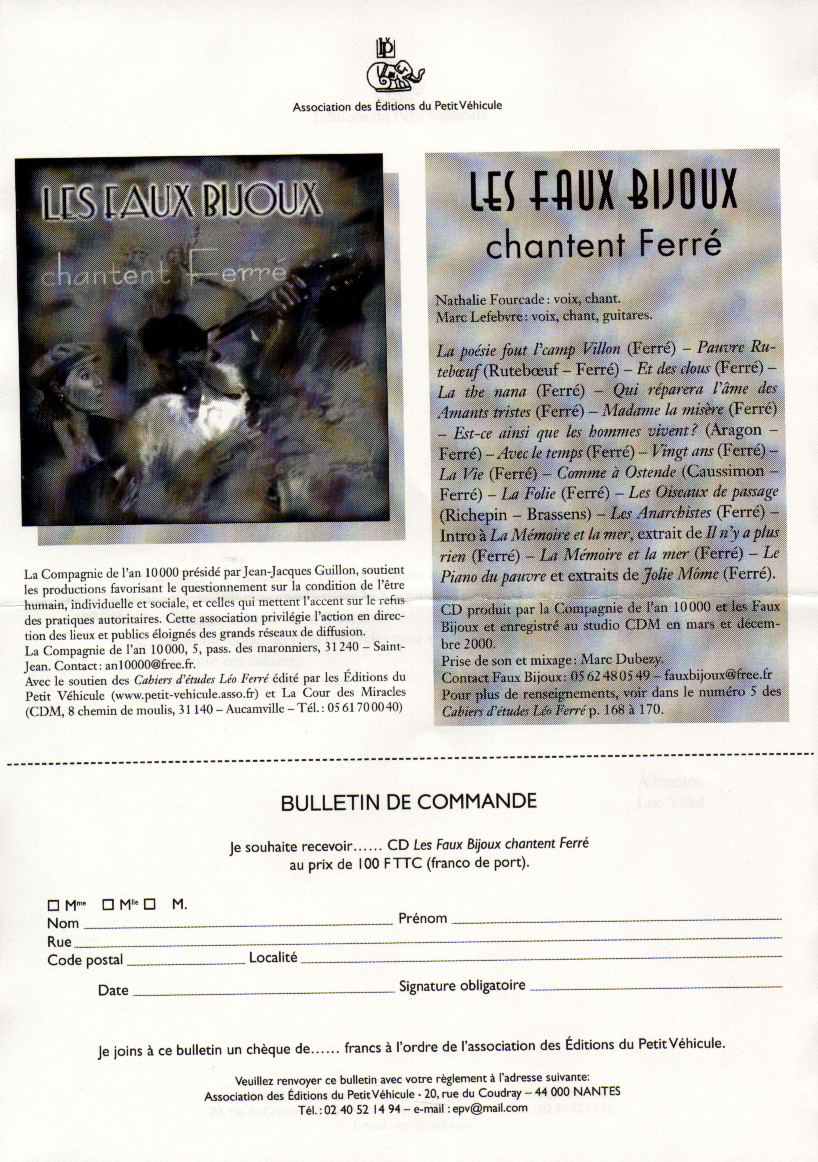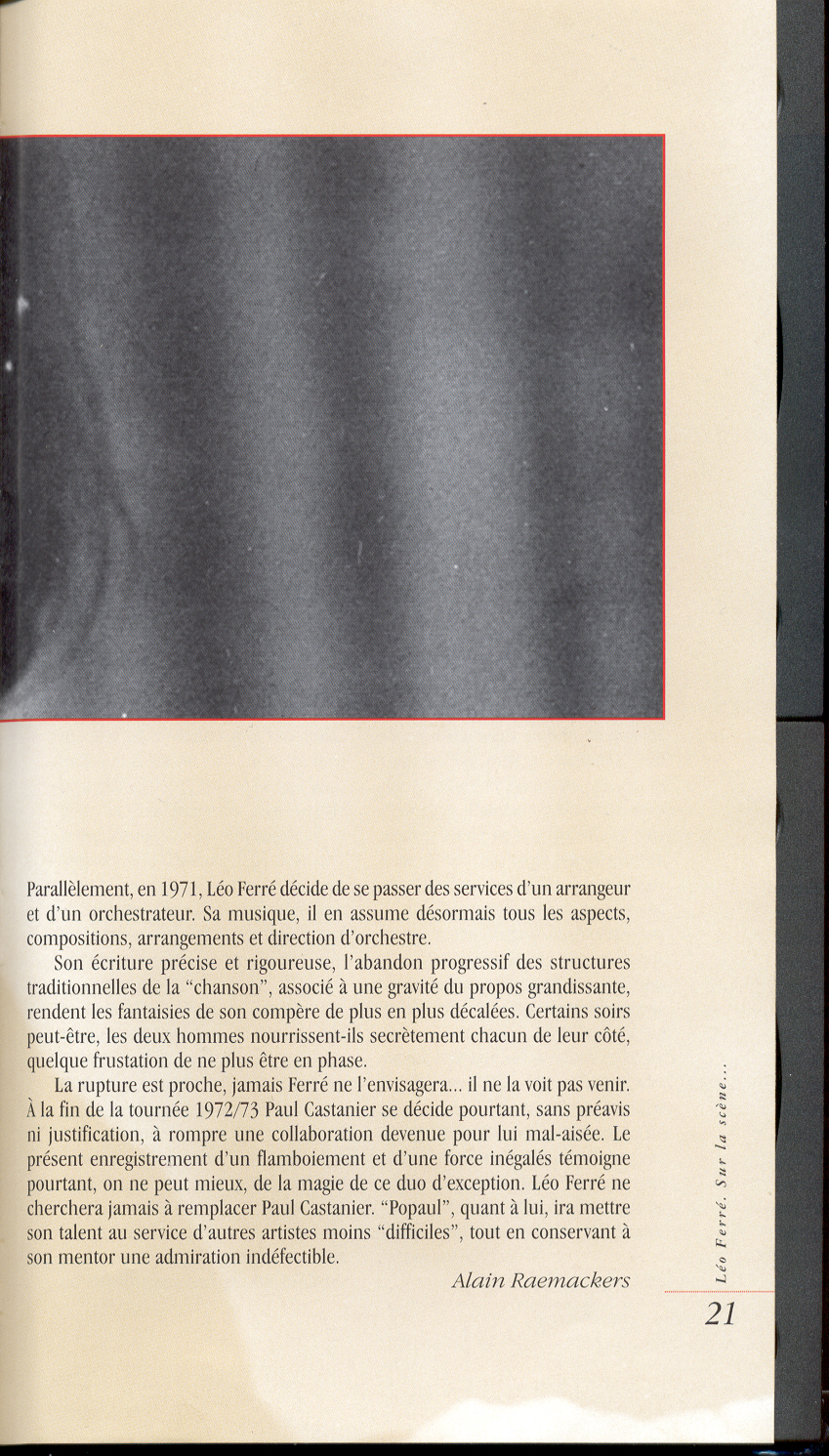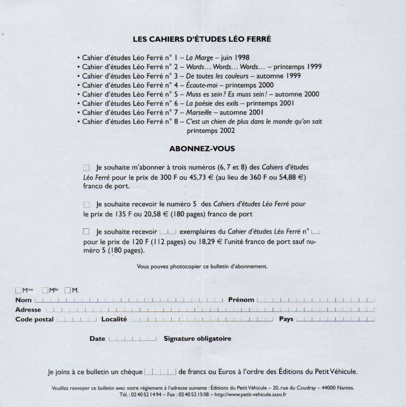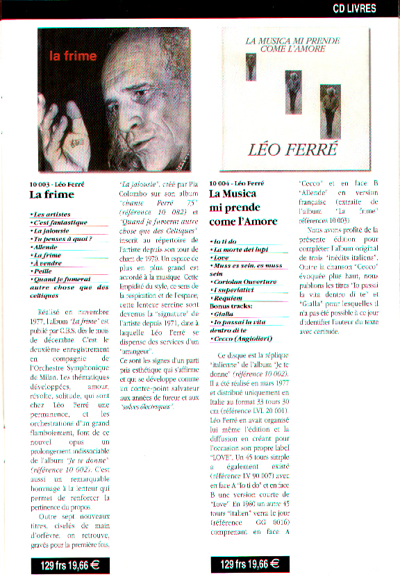 Publicité de Fil d'Ariane Éditeur du 01/05/2001 pour le livre "Je n'suis pas Léo Ferré" de Maurice Frot