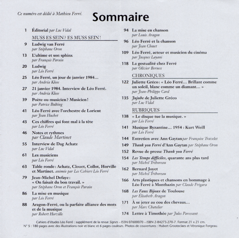 Vinyl hors série du 07/2001- spécial Léo Ferré