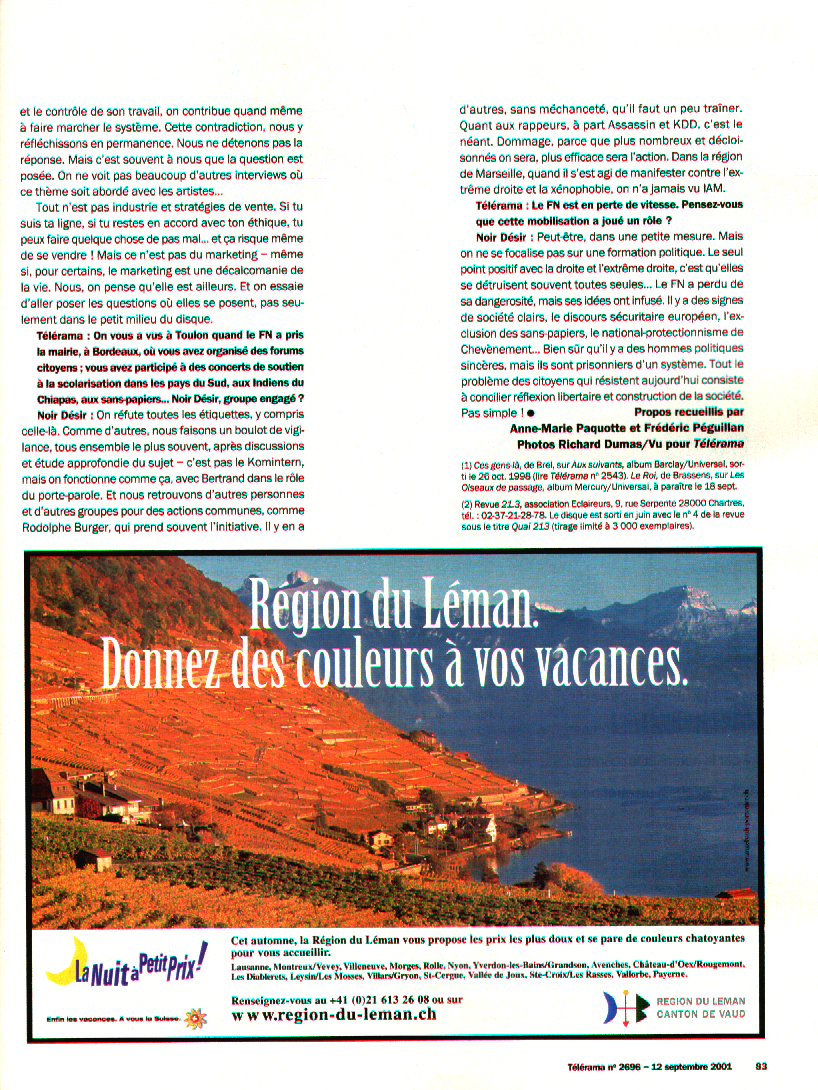 Magazine, propos recueillis par Anne-Marie Paquotte et Frédéric Péguillan