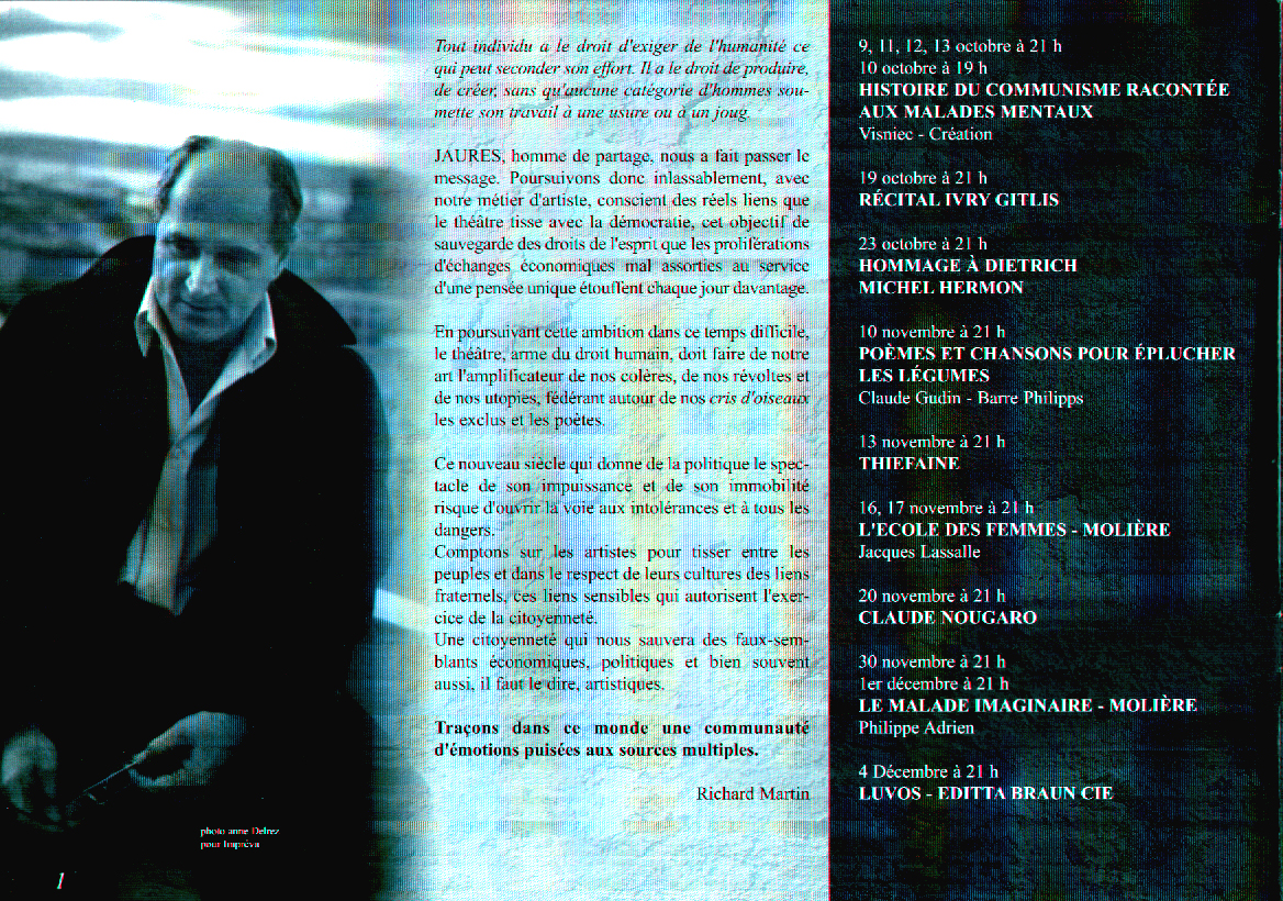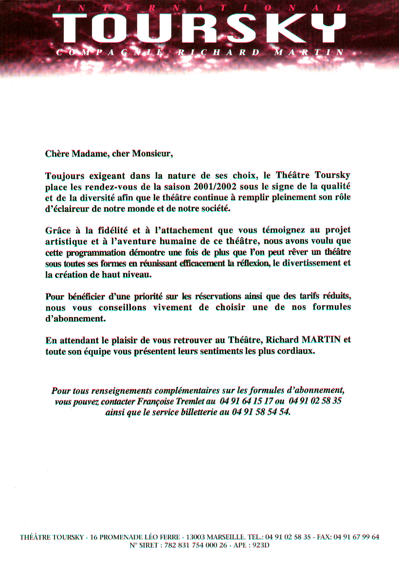 Dossier de Presse de "Sur la scène" - 26/10/2001