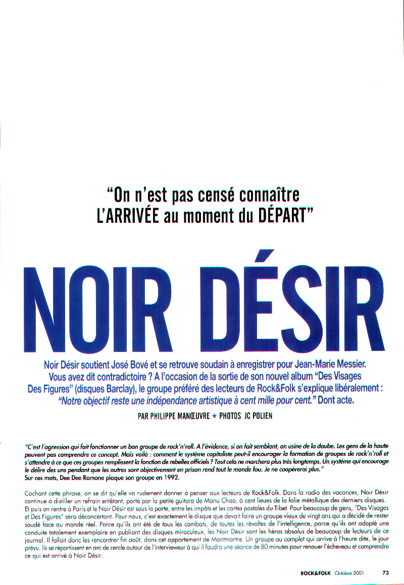 • NOIR DÉSIR - "On n'est pas censé connaître l'ARRIVÉE au moment du DÉPART"