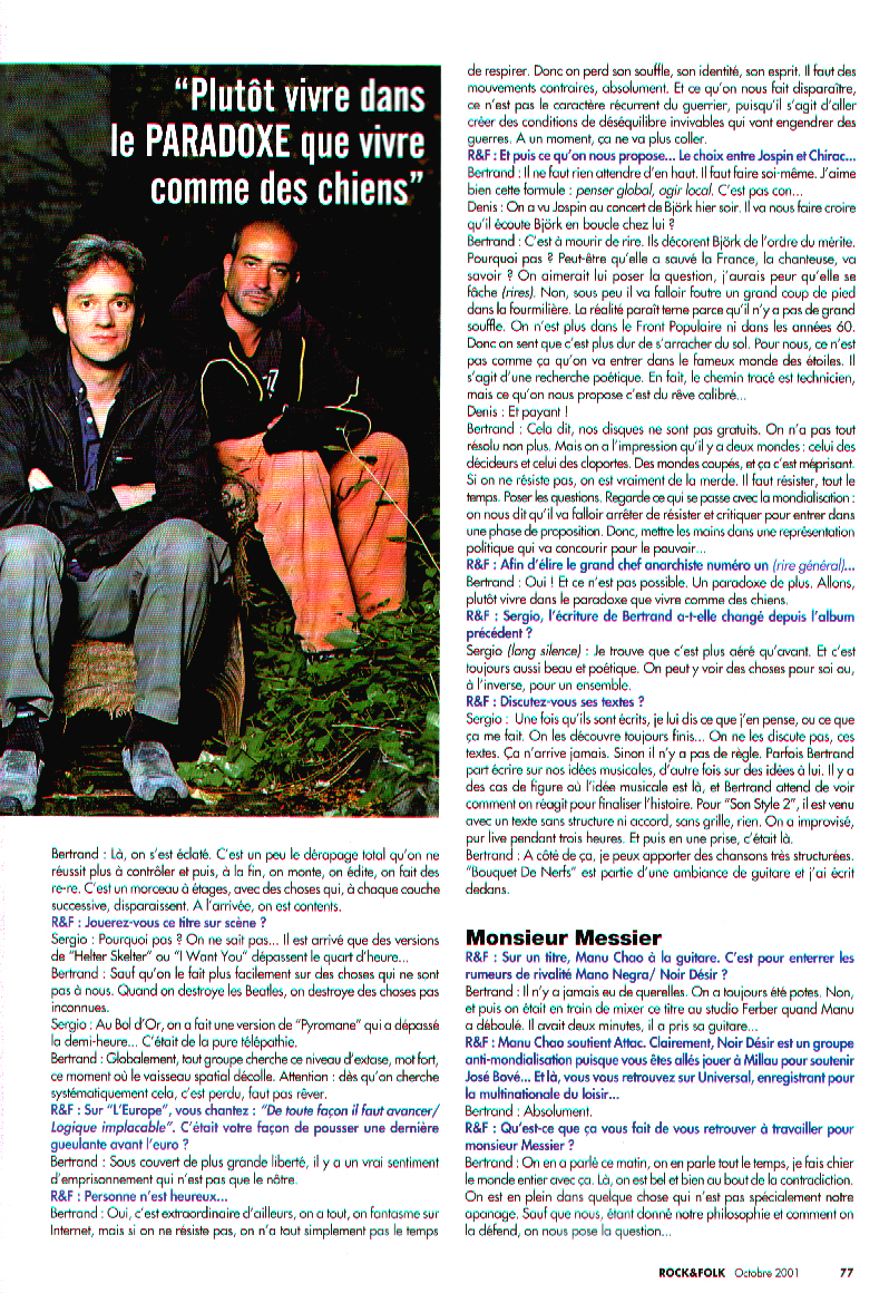 • Après cinq ans de silence, Noir Désir sort un album magnifique - Au-delà du rock
