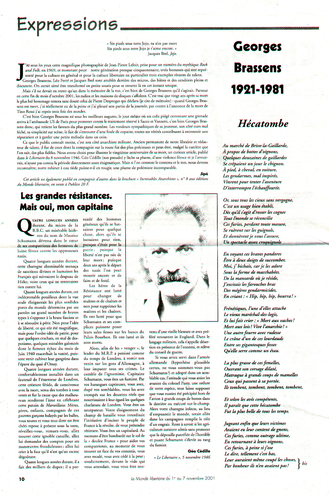 Le Monde Libertaire N° 1256 du 01/11/2001 au 07/11/2001