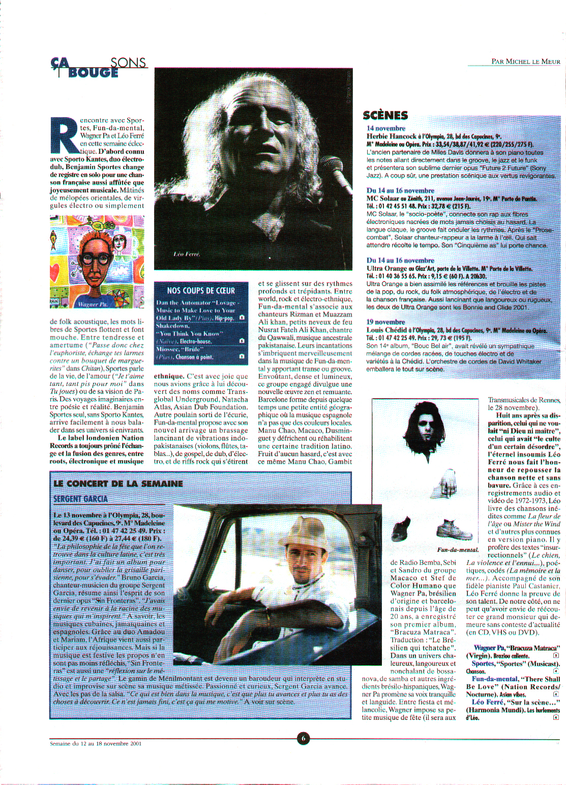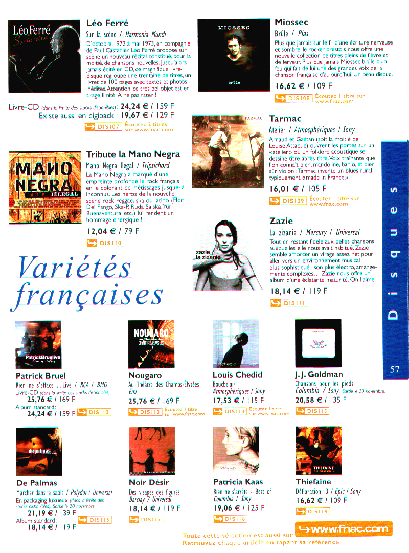 FR3 émission "Toute la musique qu'ils aiment" du 11/10/2001, notice descriptive