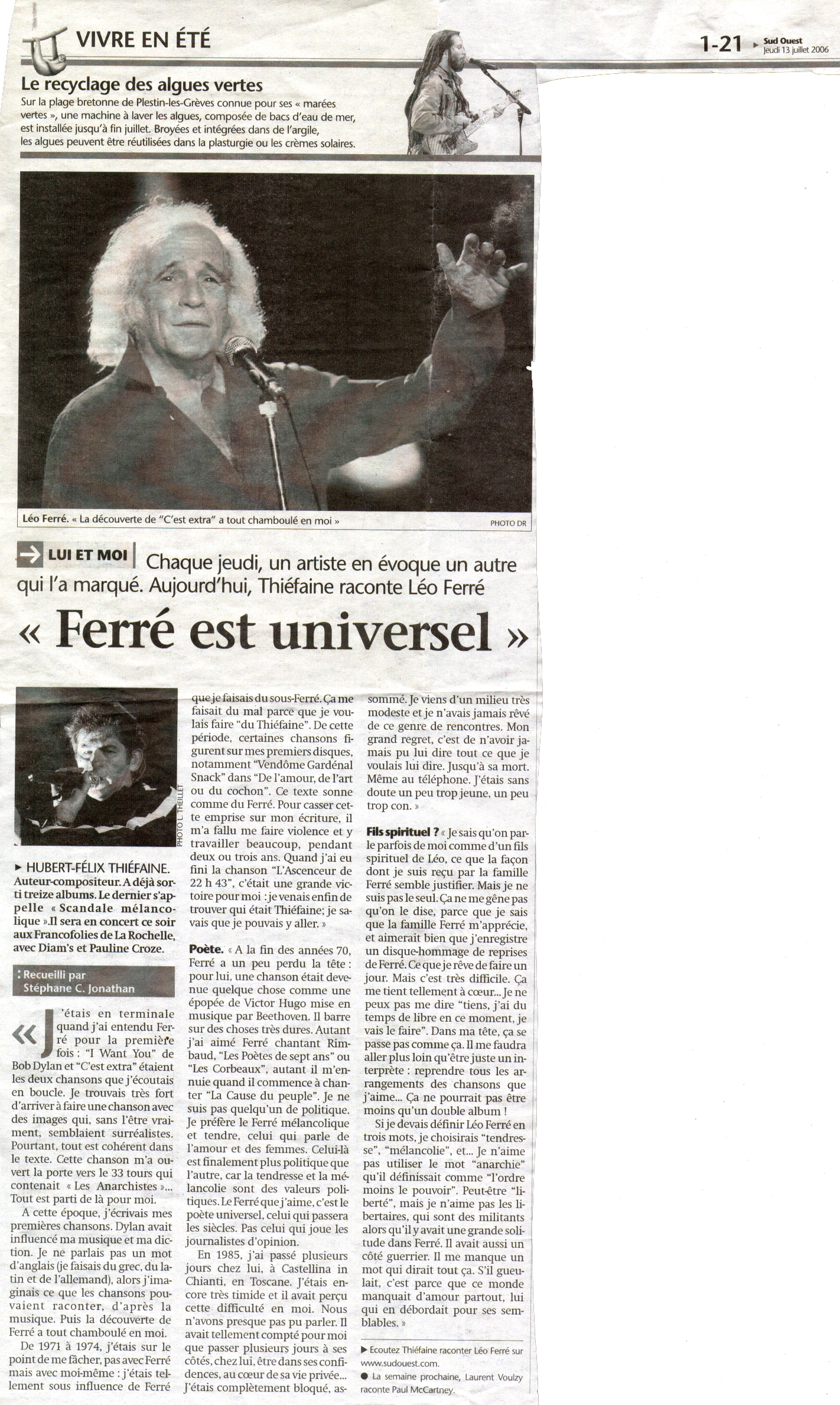 • Thiéfaine raconte Ferré : " Ferré est universel "