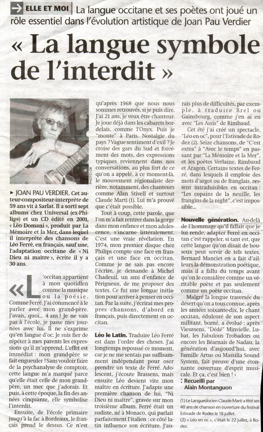 • "La langue symbole de l'interdit" par Joan Pau Verdier
