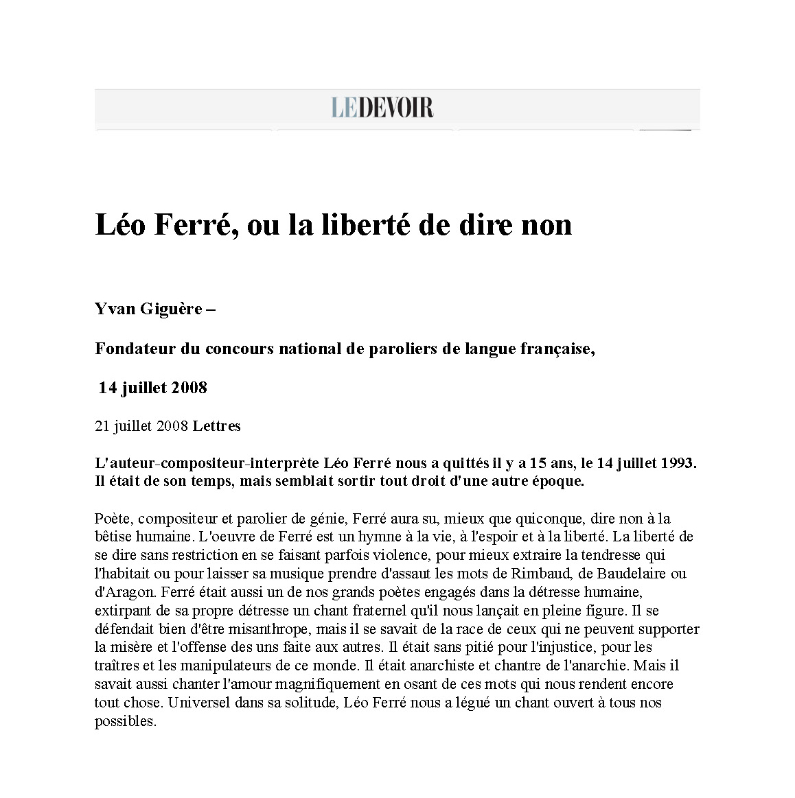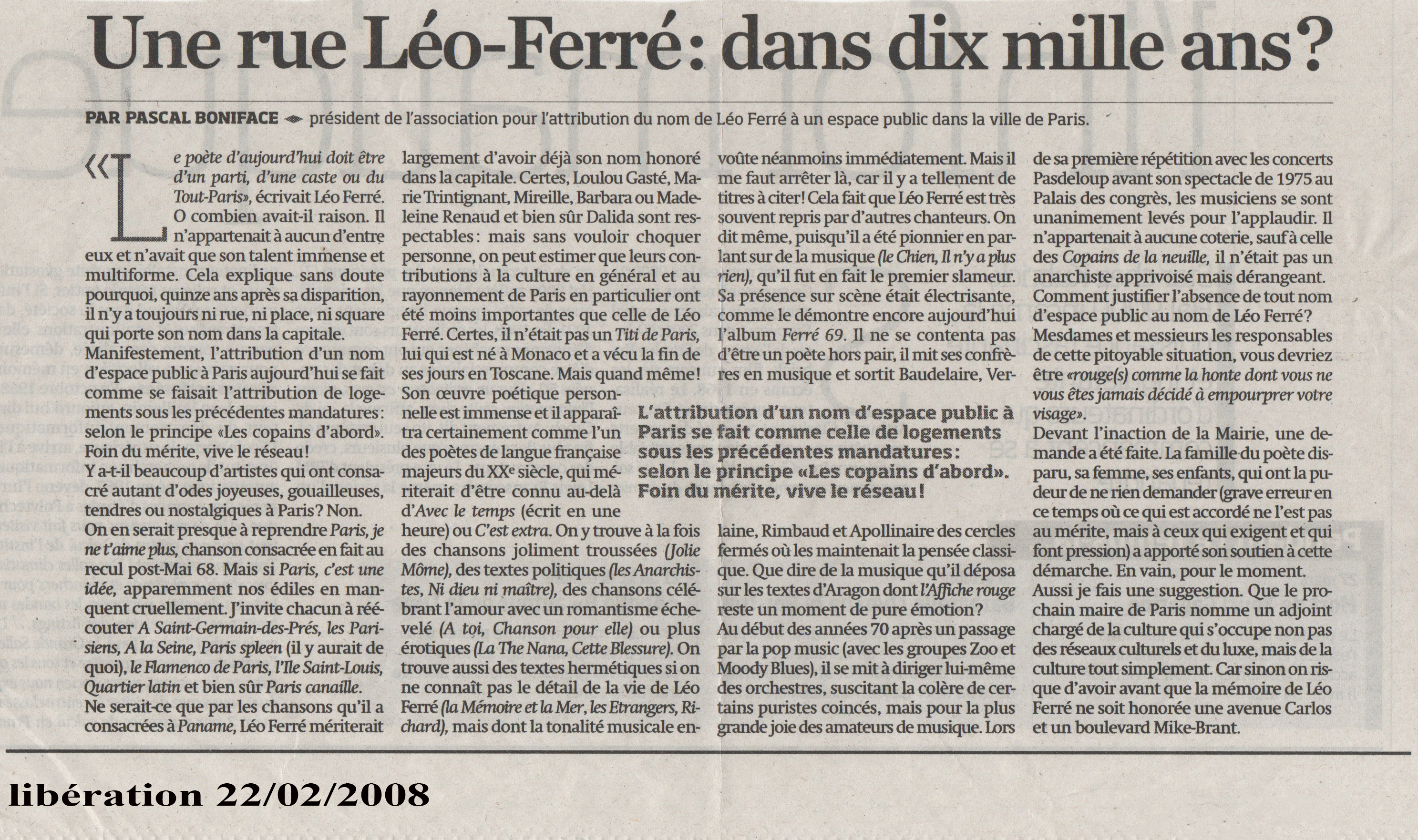 • Une rue Léo-Ferré : dans dix mille ans ?