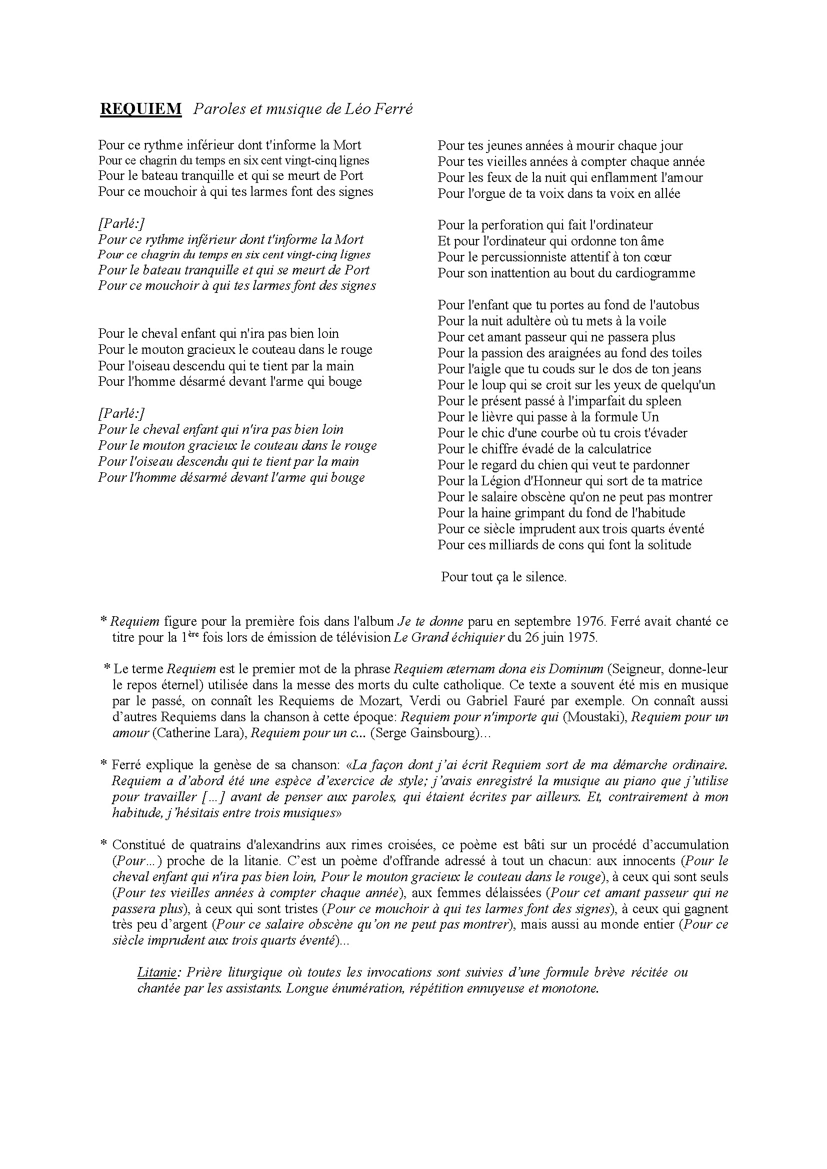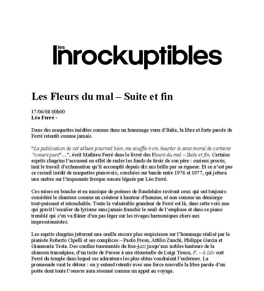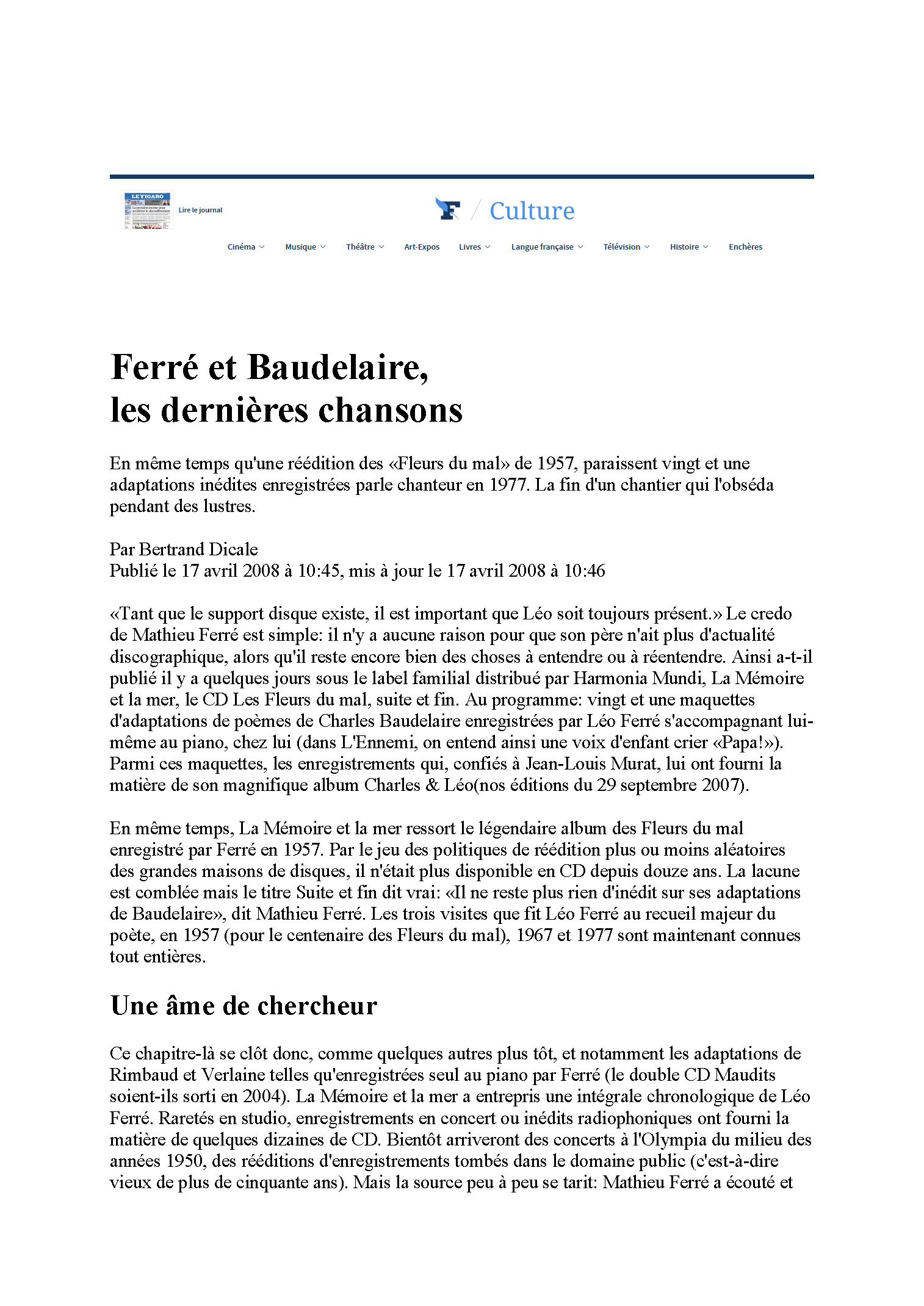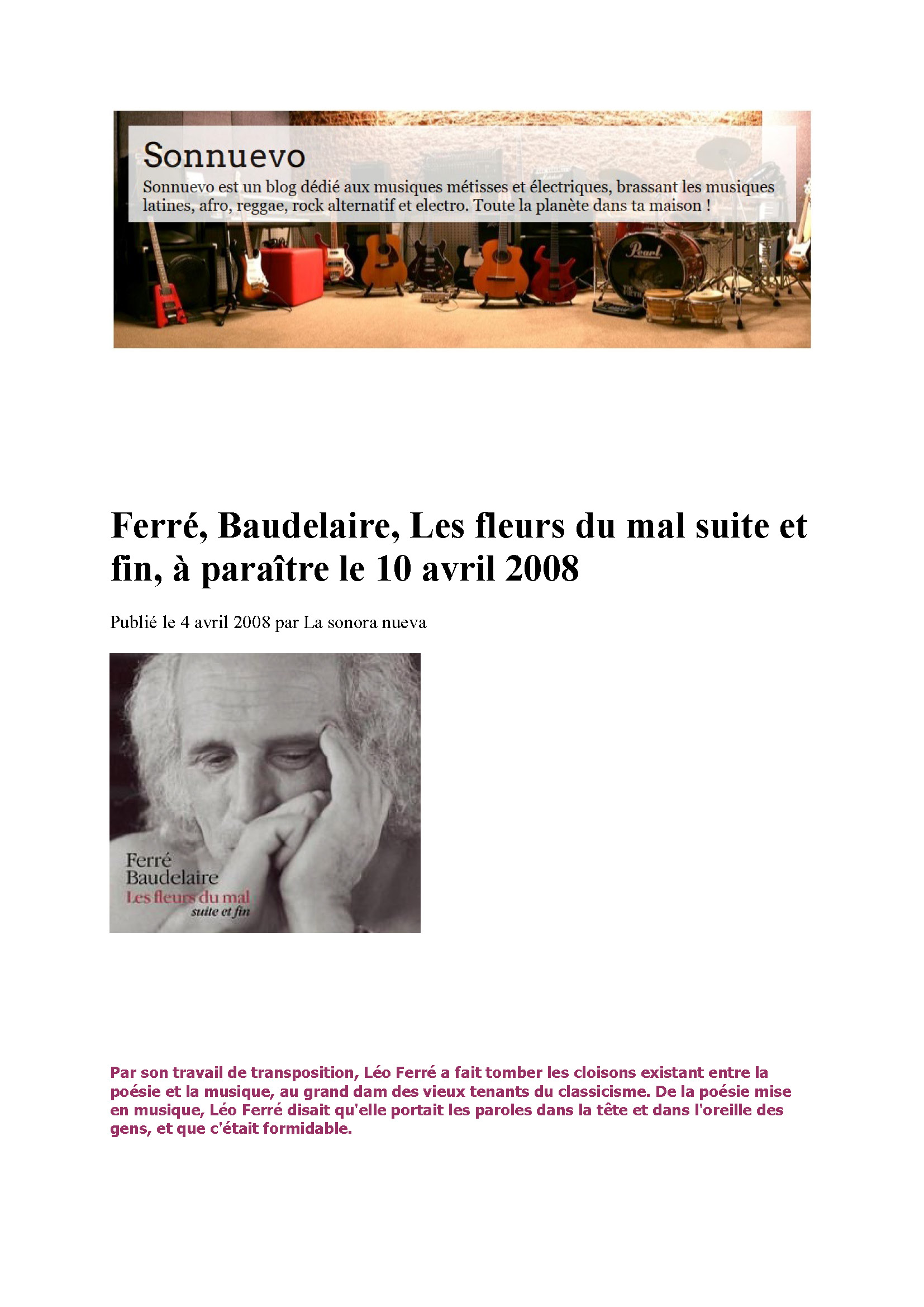 • Ferré, Baudelaire, Les fleurs du mal suite et fin