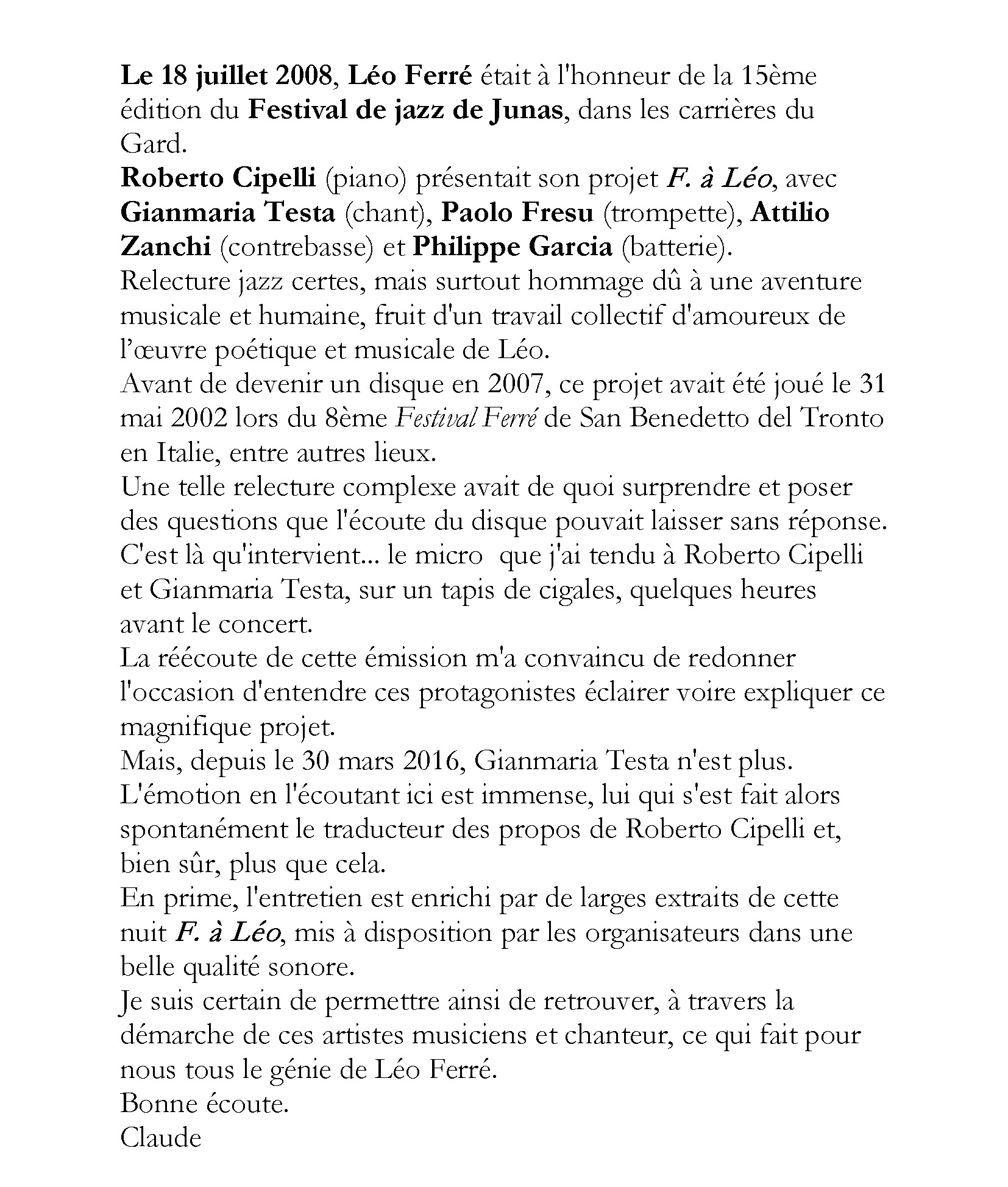 • Roberto Cipelli et Gianmaria Testa chantent Léo Ferré