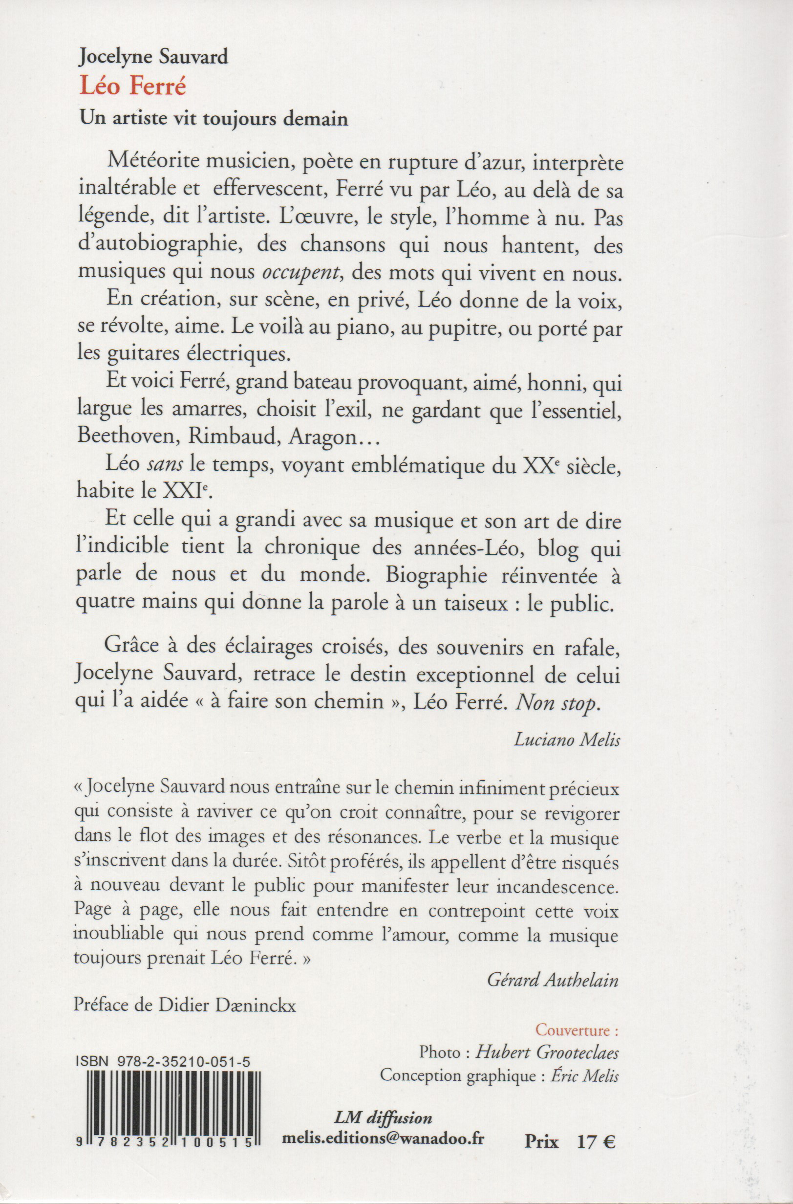sur Léo Ferré Léo Ferré, un artiste vit toujours demain, publiée aux éditions Mélis.