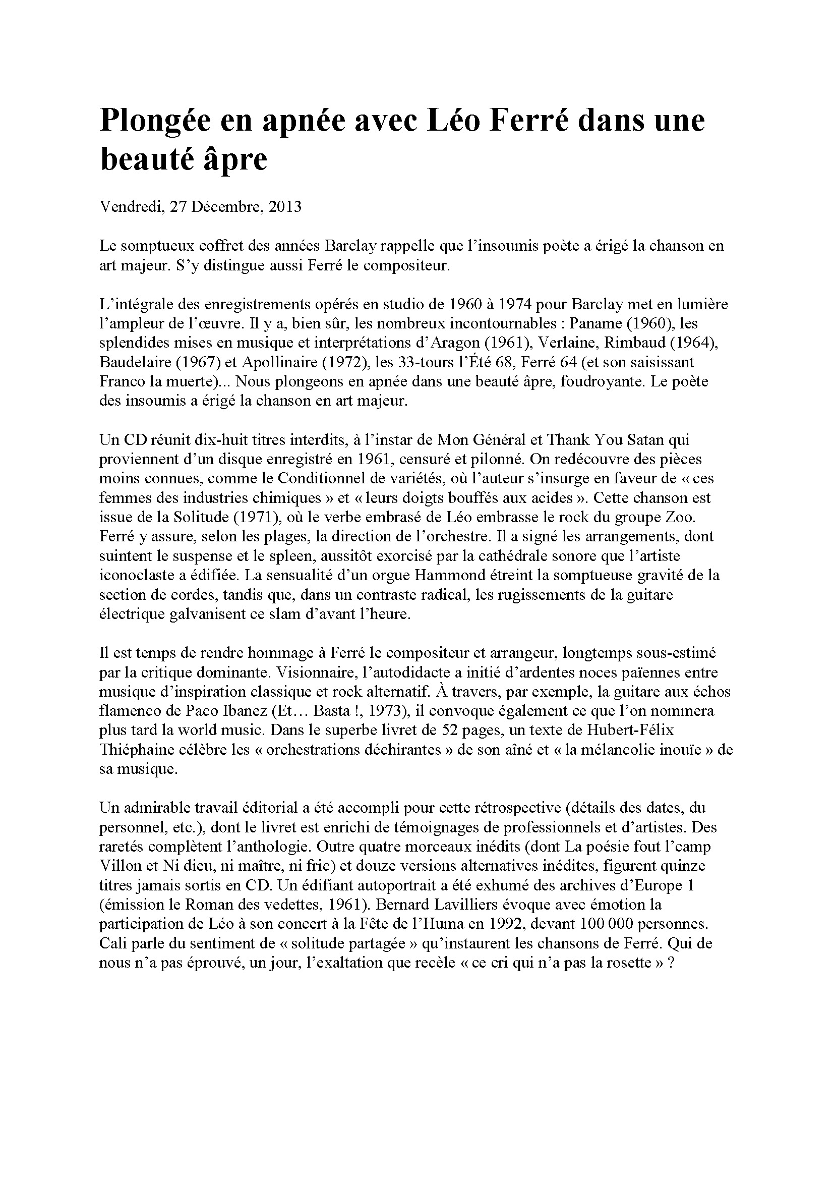 Léo Ferré, William Leymergie, Pieter Aspe,