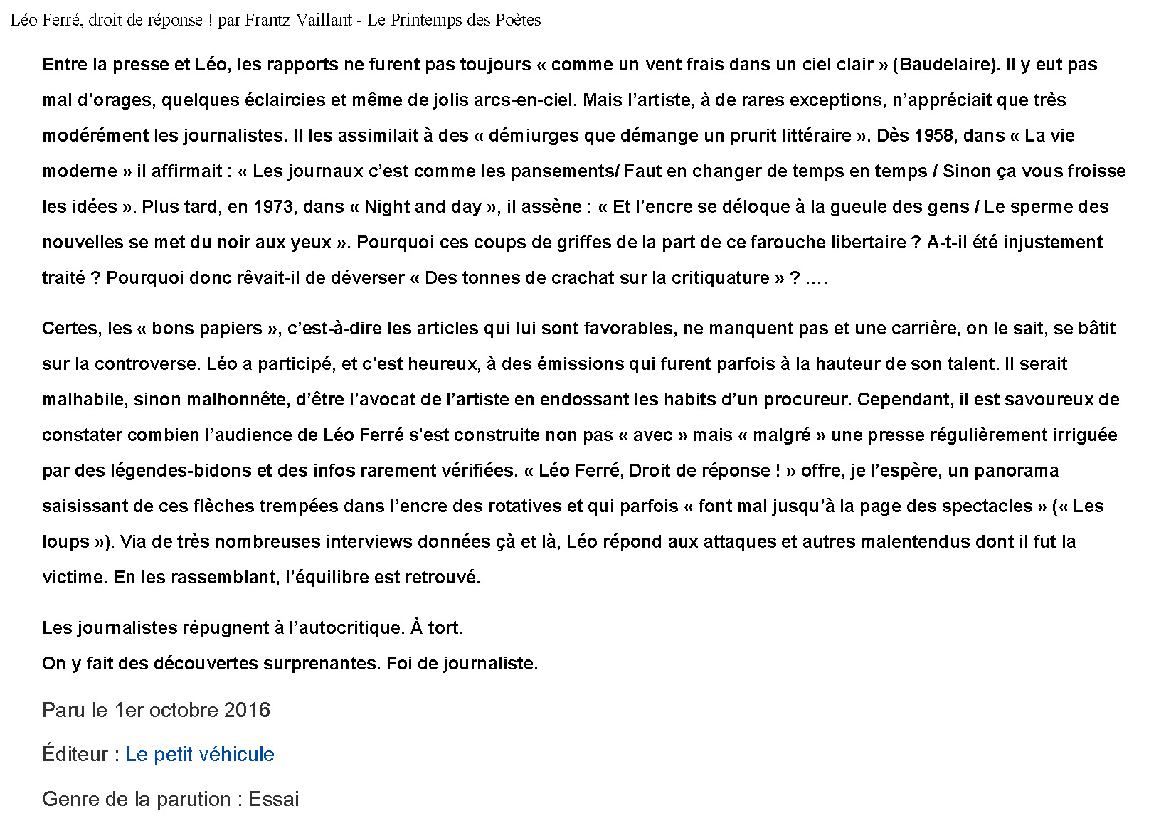 • Léo Ferré continue de chanter