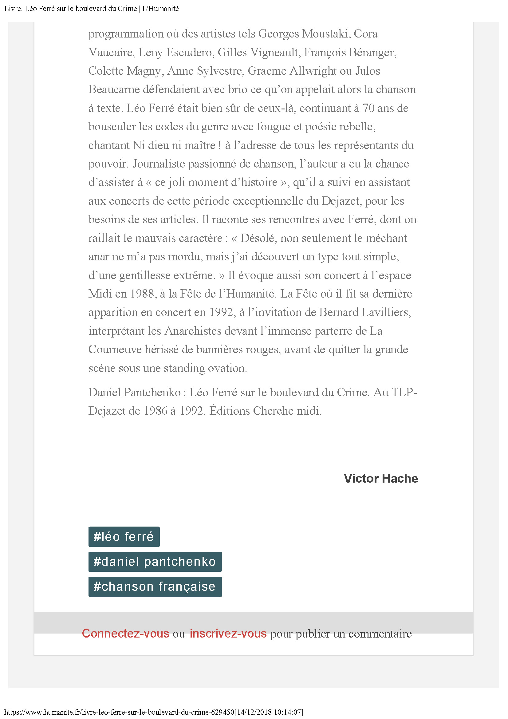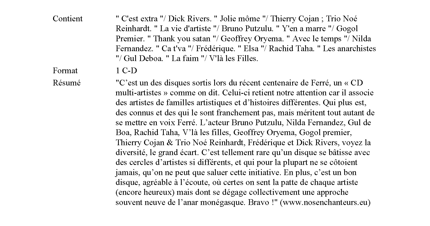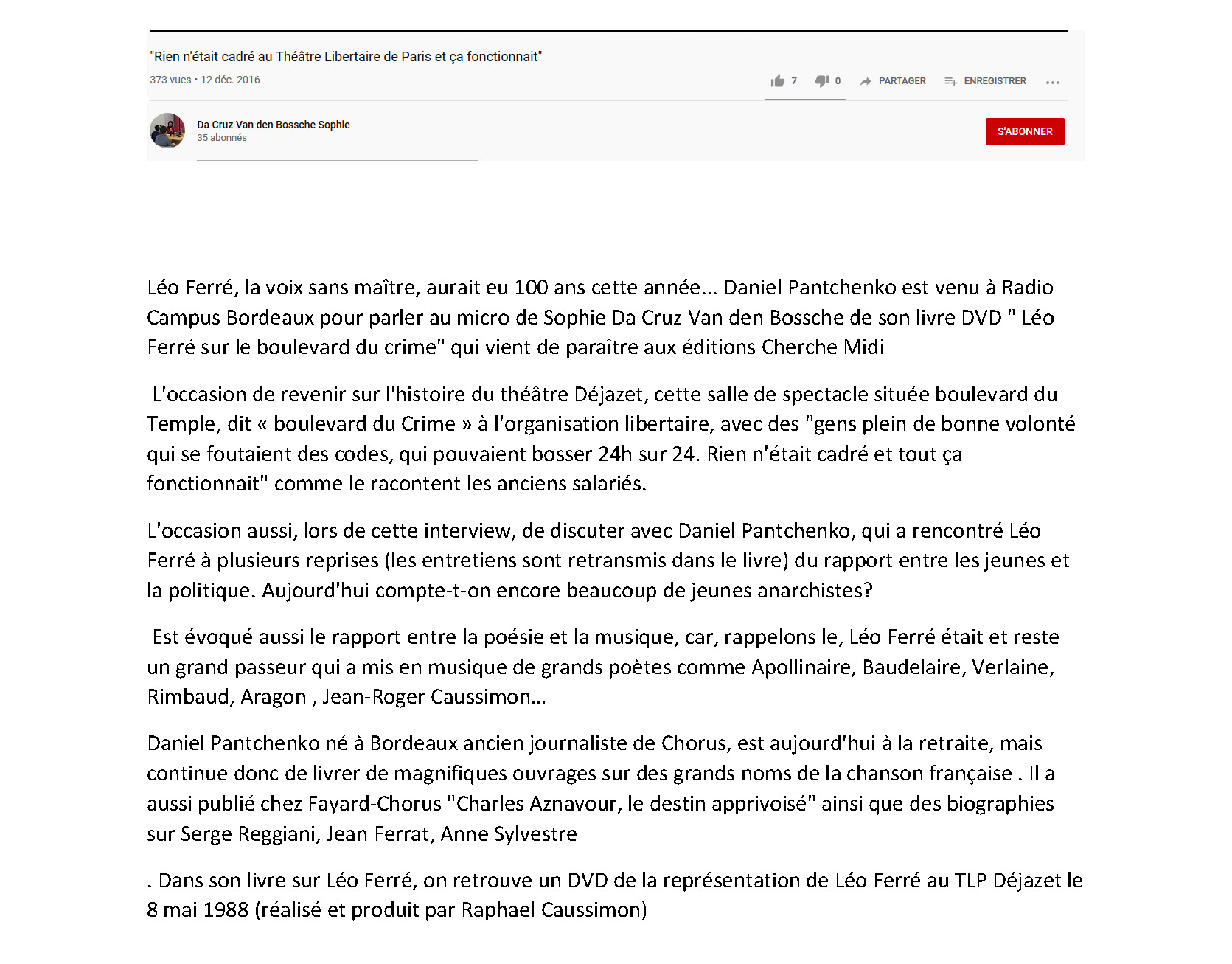 • Vous n'en pouvez plus ? Réécoutez Ferré !