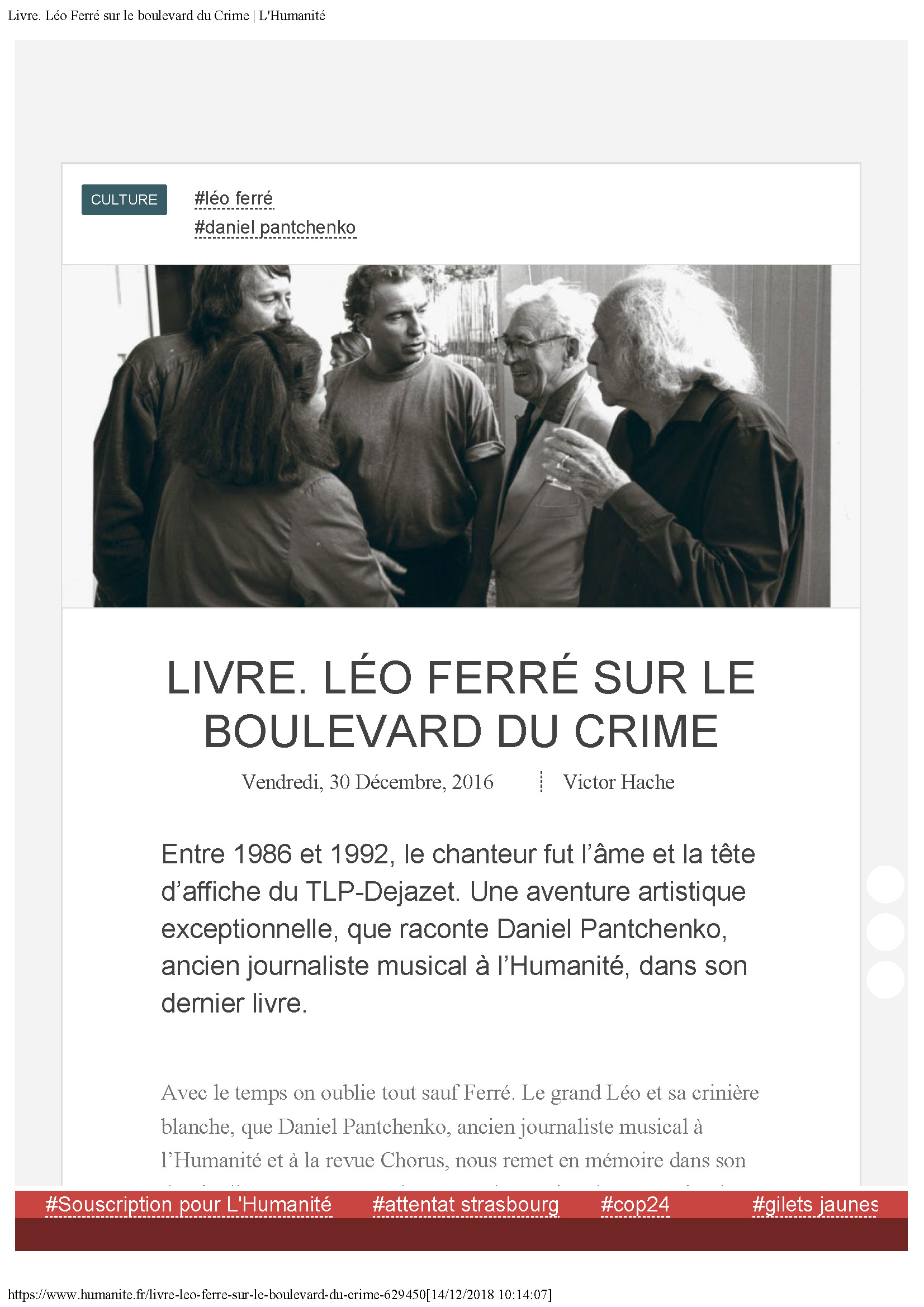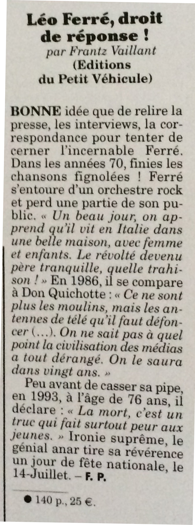 La dépêche : Léo Ferré aurait eu 100 ans