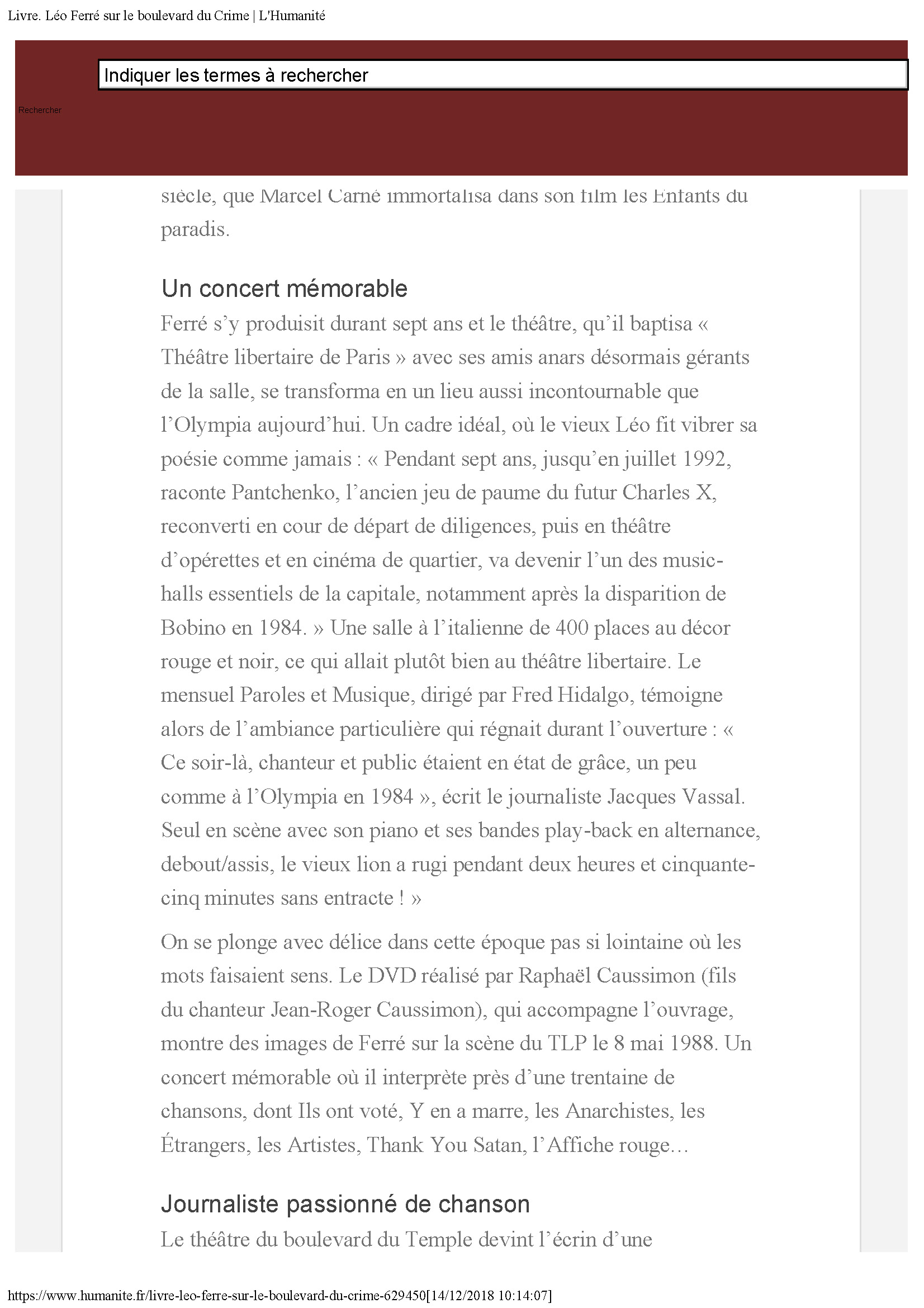 • Le centenaire de Léo Ferré :