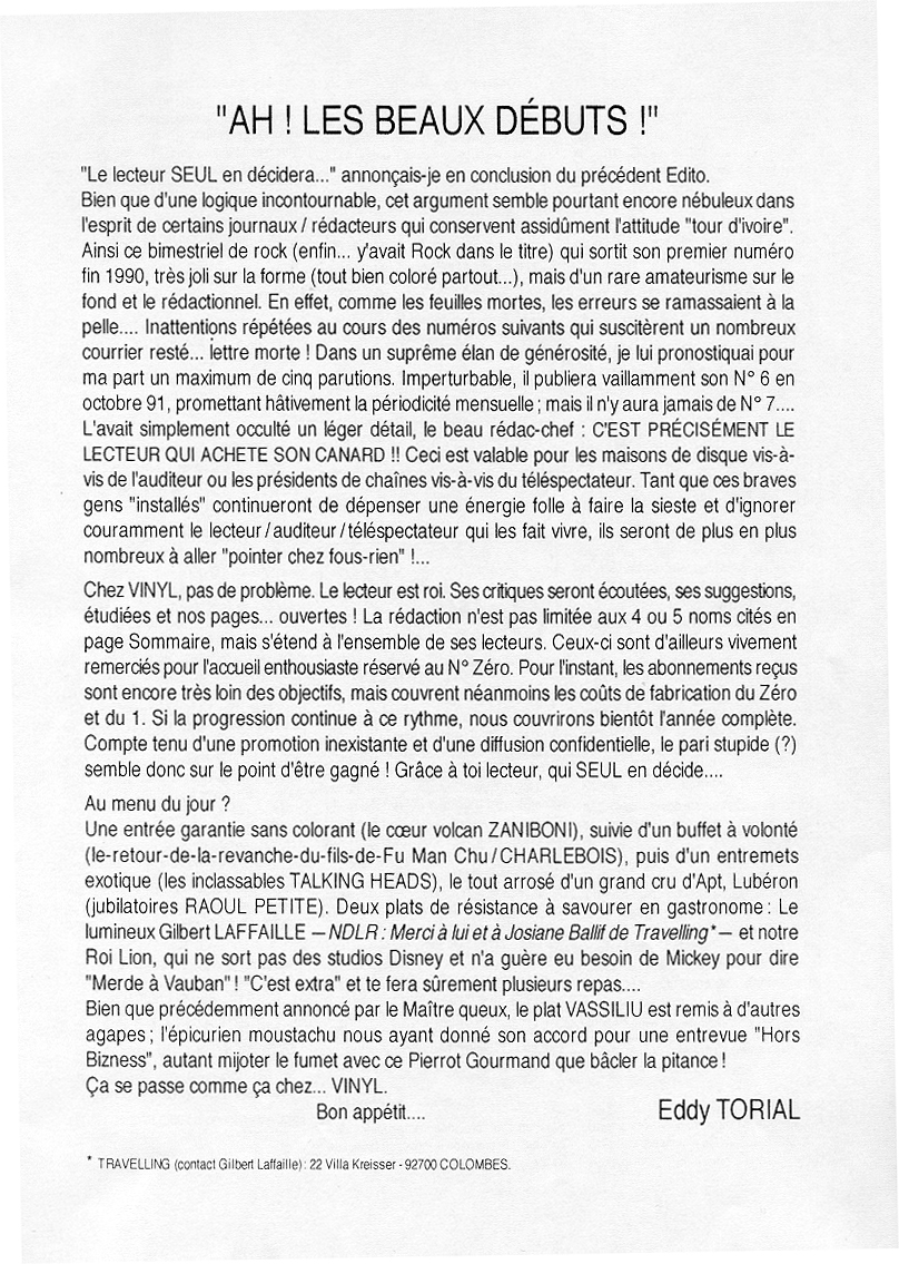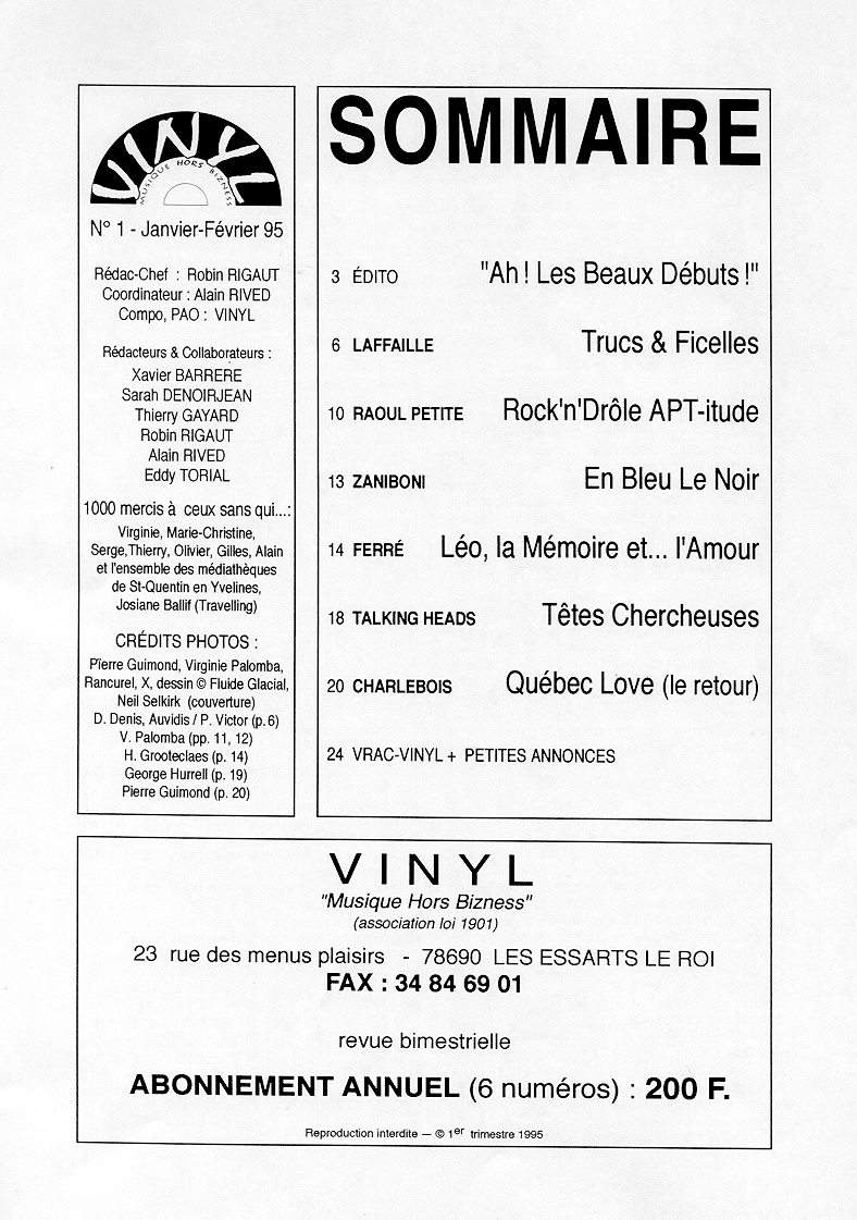 Vinyl N°1, bimensuel de Janvier Février 1995