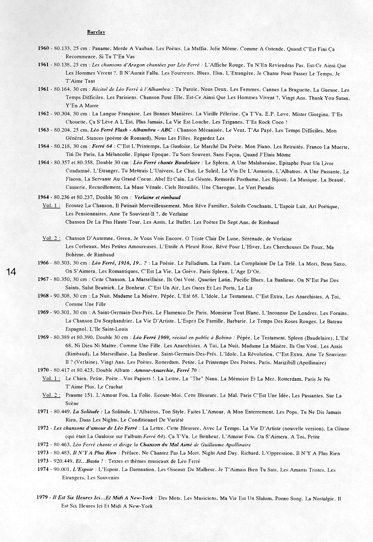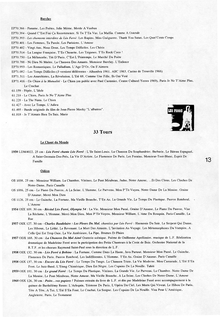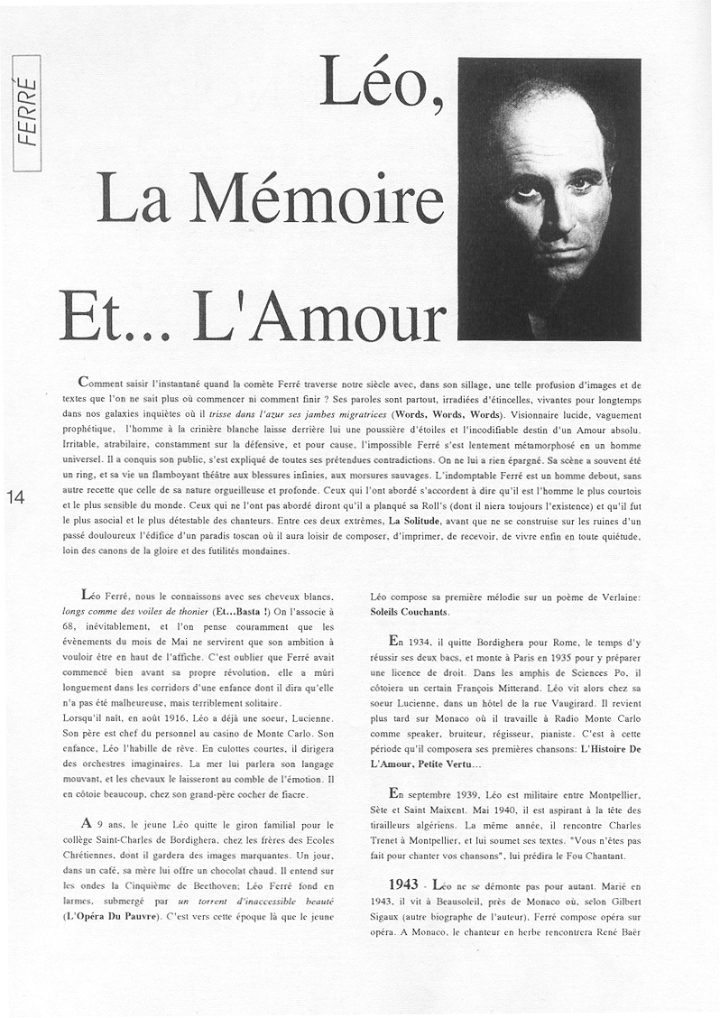 • Ferré Léo, Buisson Patrick, Grooteclaes Hubert
